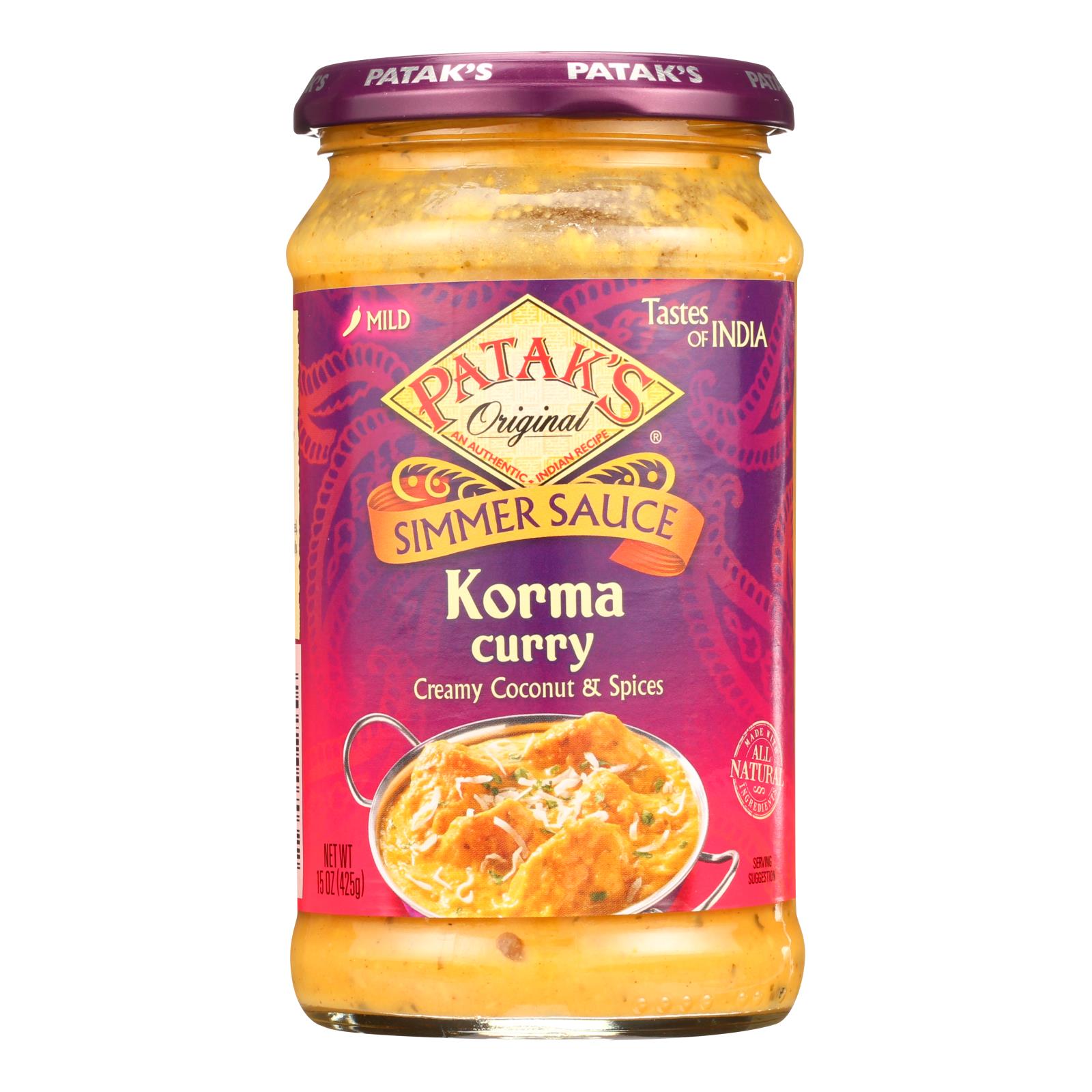 Pataks Simmer Sauce – Korma Curry – Mild – 15 Oz – Case Of 6