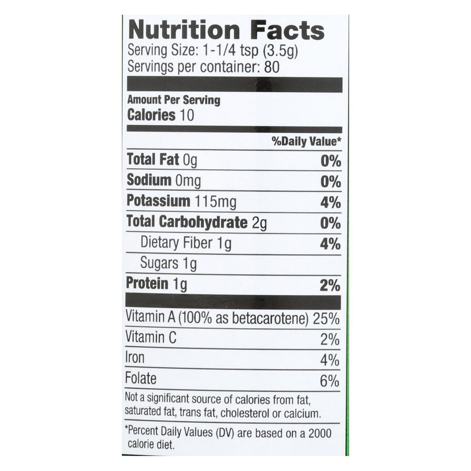 - One rounded teaspoon equals a large serving of leafy greens