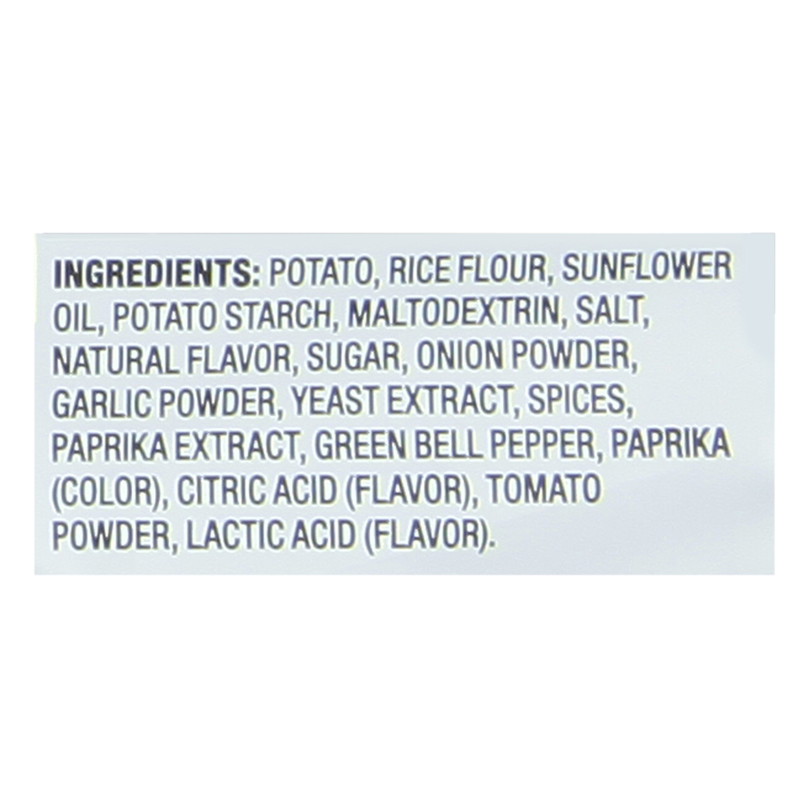 Potatoes, nacho seasoning. (For a complete ingredient list, please refer to the product packaging.)