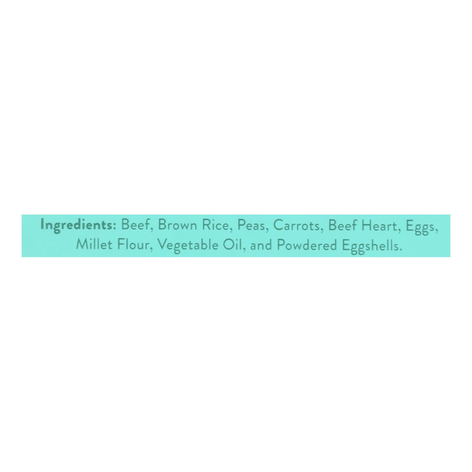 Portland Pet Food Company Dog Meal with beef and rice comes in a convenient case of eight 9 oz packs, made in the USA with wholesome ingredients