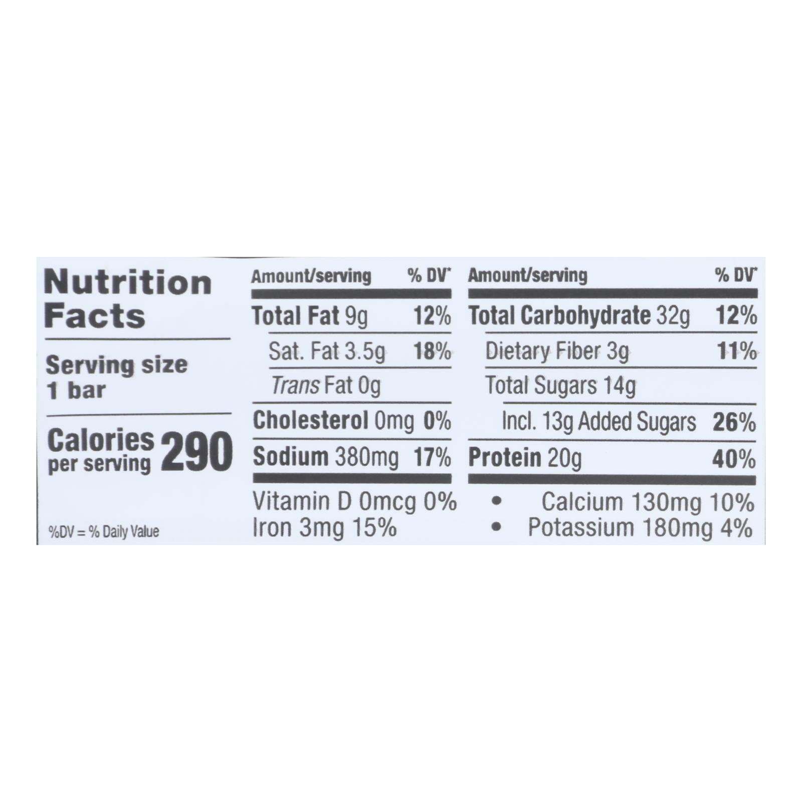 This bar features 20 grams of plant protein from soy protein isolate and peanuts, helping to support muscle health and energy levels. Chia and flax seeds are included, both commonly used in wellness traditions for their natural source of omega-3s and fiber. Every bite is thoughtfully made with non-GMO, gluten-free, and dairy-free ingredients.