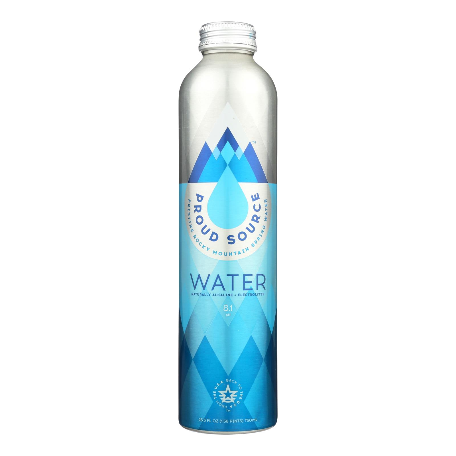 Proud source water flows from a pristine spring in the rocky mountains before being poured into sustainable aluminum bottles that can be recycled or reused again and again. This naturally alkaline water has a ph of 8.1 and contains electrolytes such as magnesium, potassium and bicarbonates. The 25.3 fl. Oz. Of water in this bottle provide ample refreshment when you’re on the go.