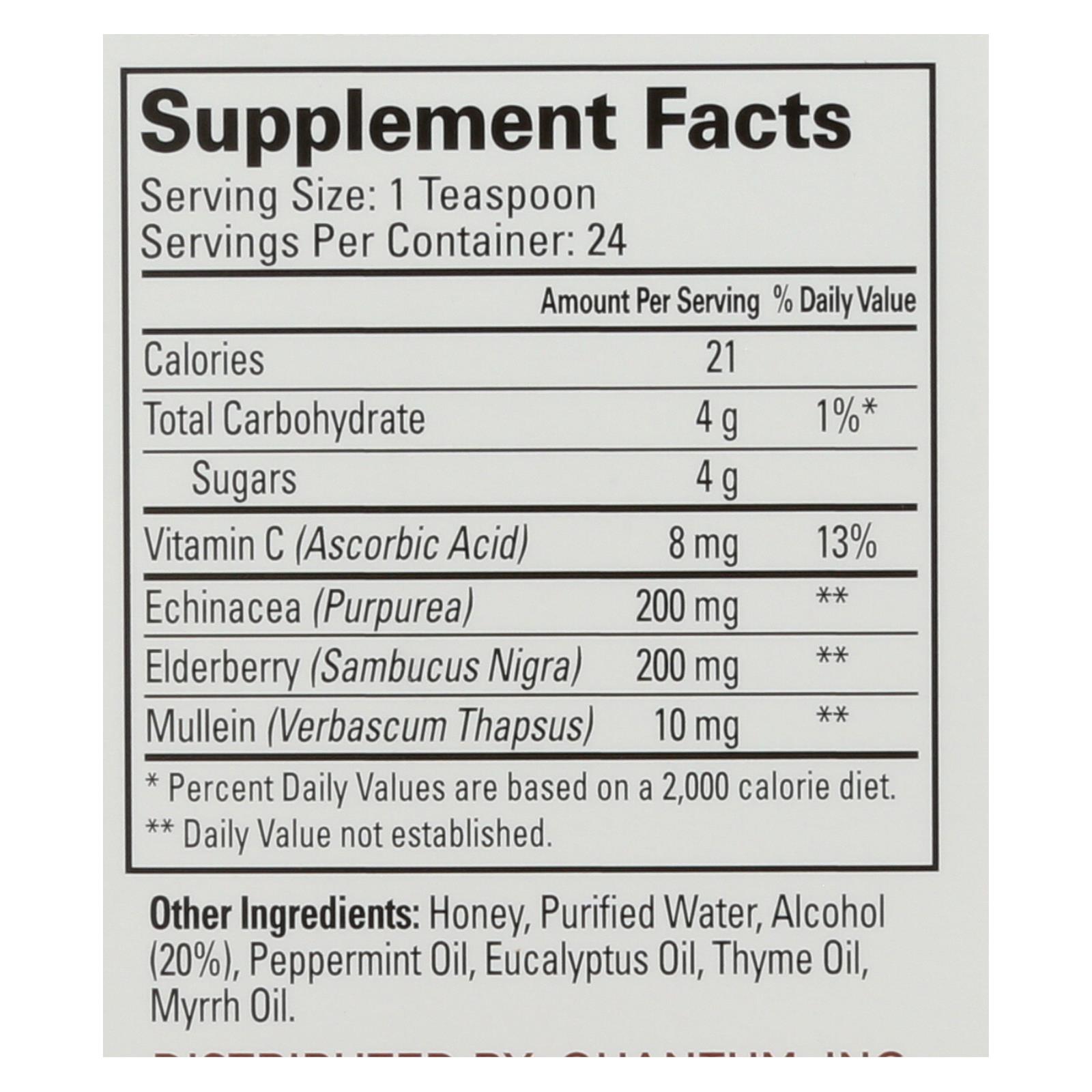 Quantum health elderberry + immune defense can be used as a daily supplement to support the immune system. Suggested use is 1 teaspoon 4 times daily. Our tincture is high is proanthocyanidins, flavonoids and quinones with the added oils peppermint, eucalyptus, thyme and myrrh to help soothe the immune system. Ingredients include elderberry, vitamin c, echinacea and mullein. This tincture comes in a 4 fl. Oz. Package.