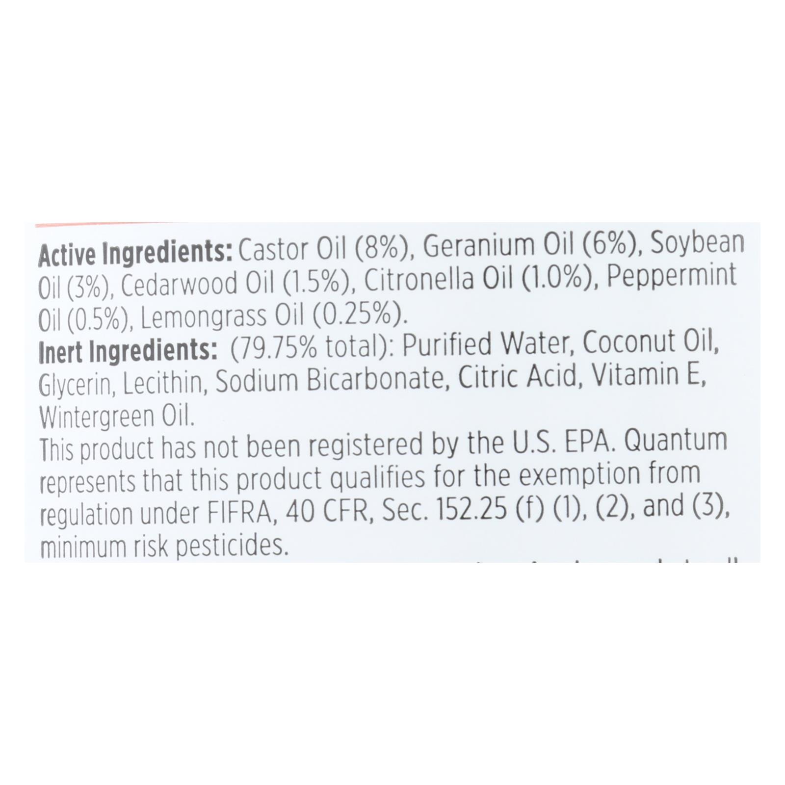 Purified water, coconut oil, glycerin, lecithin, sodium bicarbonate, citric acid, vitamin E, wintergreen oil, castor oil (8%), geranium oil (6%), soybean oil (3%), cedarwood oil (1.5%), citronella oil (1.0%), peppermint oil (0.5%), lemongrass oil (0.25%).