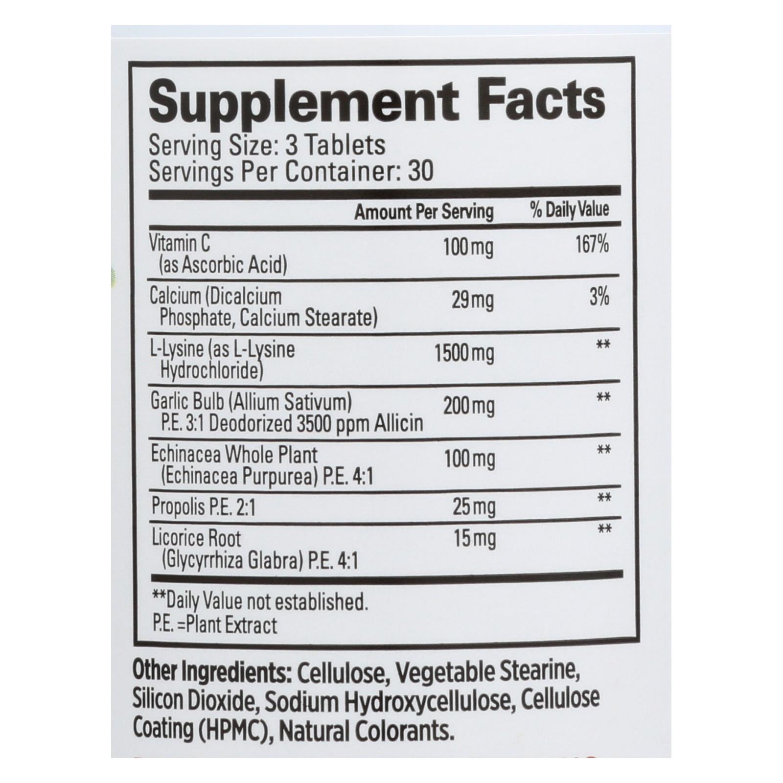 This supplement features lysine, an essential amino acid known for its role in supporting immune health. The formula is carefully designed for daily use, and is free from yeast, wheat, milk, rye, soy, oats, barley, sugar, preservatives, and artificial colors or flavors-making it a clean choice for your wellness routine.