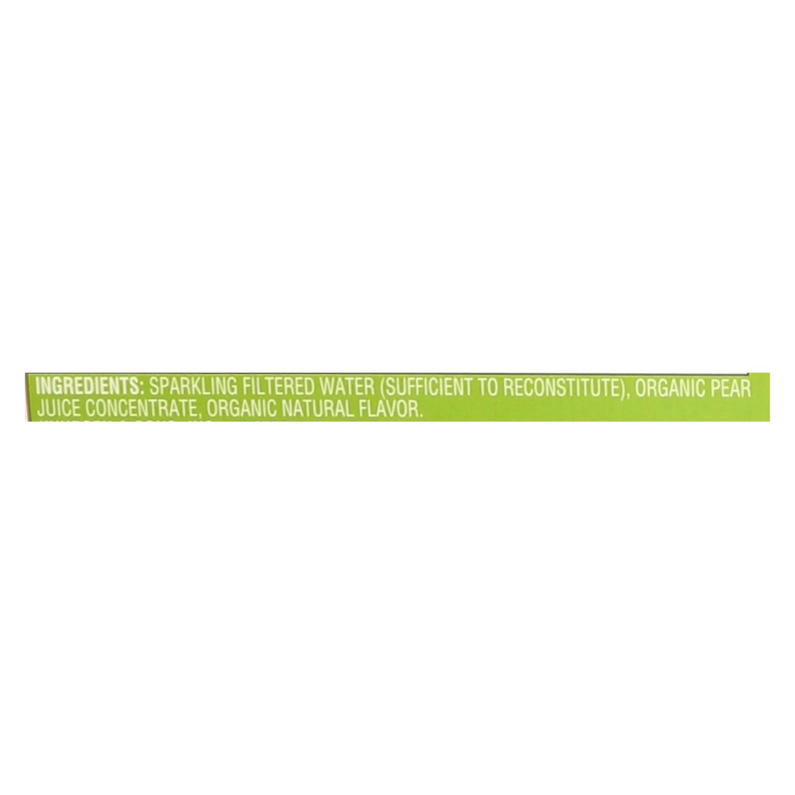 Organic pear juice, sparkling water, organic flavors.