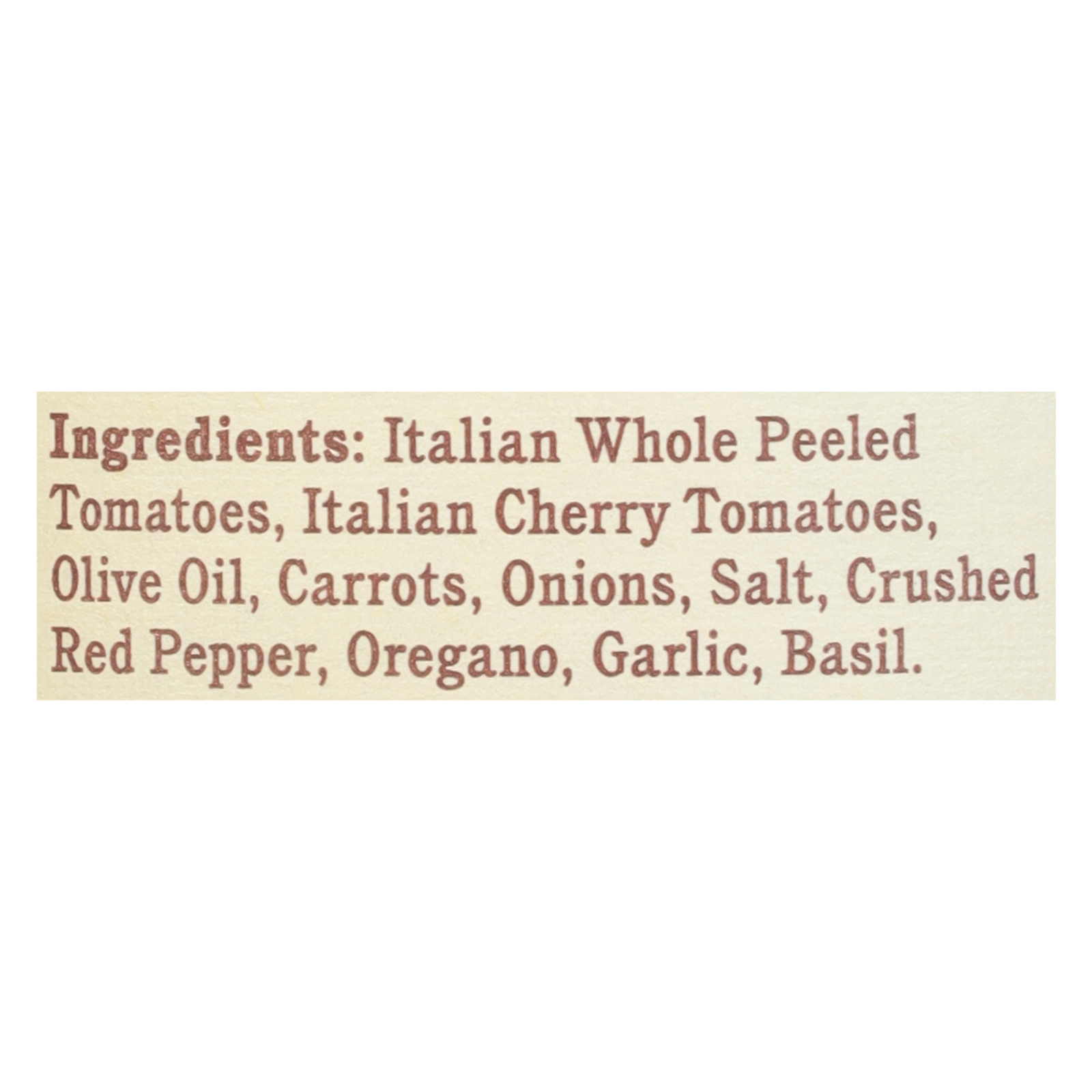 ingredients : italian whole peeled tomatoes;italian cherry tomatoes;olive oil;carrots;onions;salt;crushed red pepper;oregano;garlic;basil