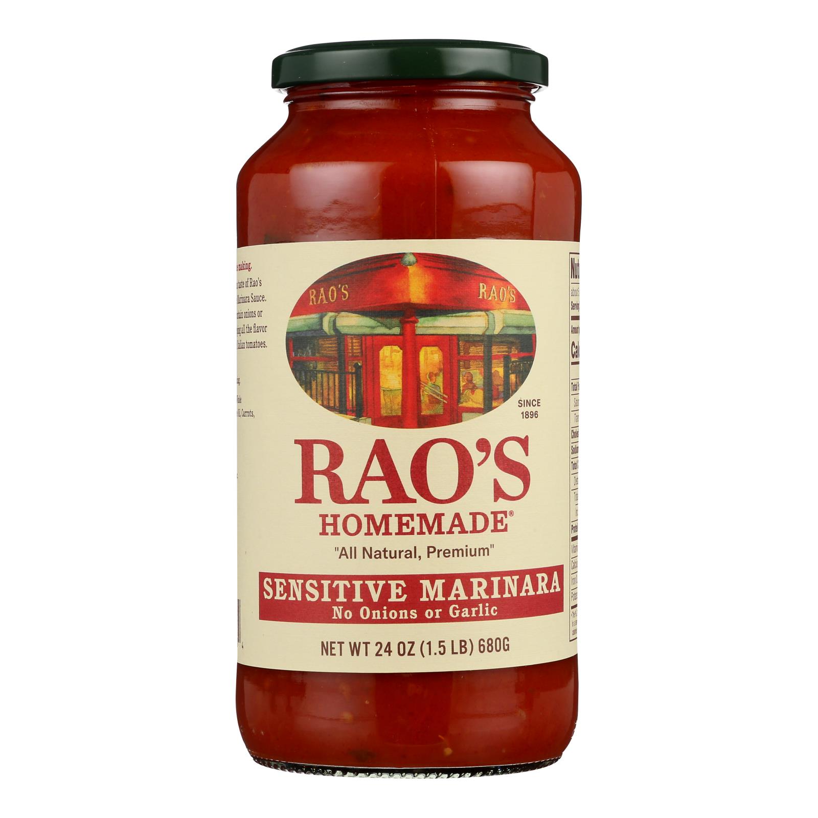 Rao’s homemade sensitive formula marinara sauce combines traditional italian flavors for a flavorful, all-purpose tomato sauce that’s gentle enough for sensitive palettes and stomachs. It’s composed of all-natural, premium ingredients including italian tomatoes, olive oil and fresh carrots. While this sauce is the perfect way to finish off pasta, it’s also great for the preparation of vegetables and meats like chicken, pork and steak. Each jar contains 24 oz.