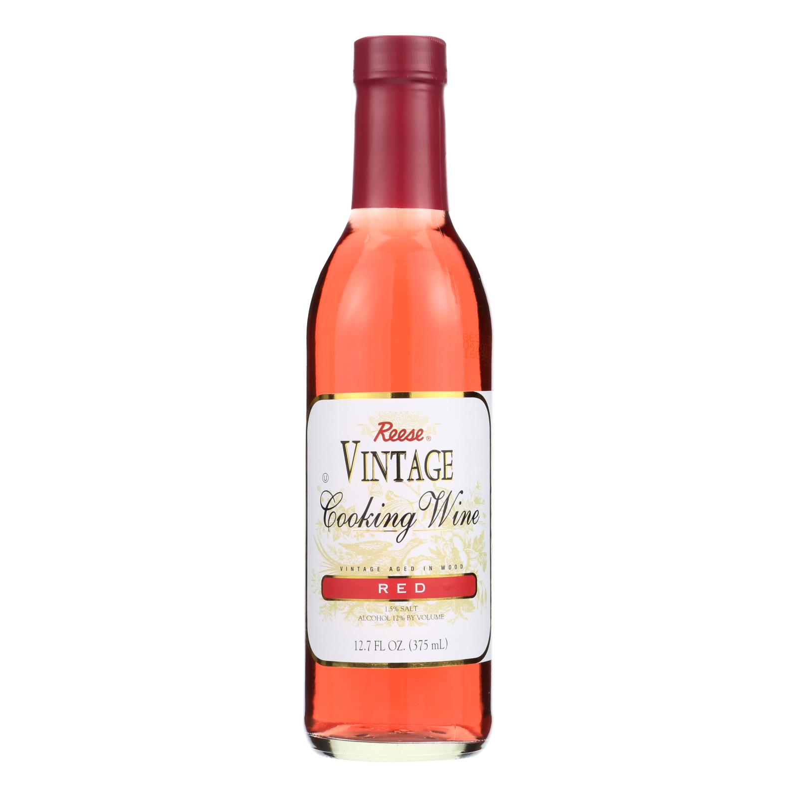 Reese red cooking wine is a certified kosher wine that adds flavor to stews, sautes and sauces. This 12.7 fl. Oz. Bottle contains 1.5% salt and has an alcohol content of 12% by volume. With 13 servings per bottle, our vintage red cooking wine is fat-free, has 2 g. Of sugar and 20 calories per serving.