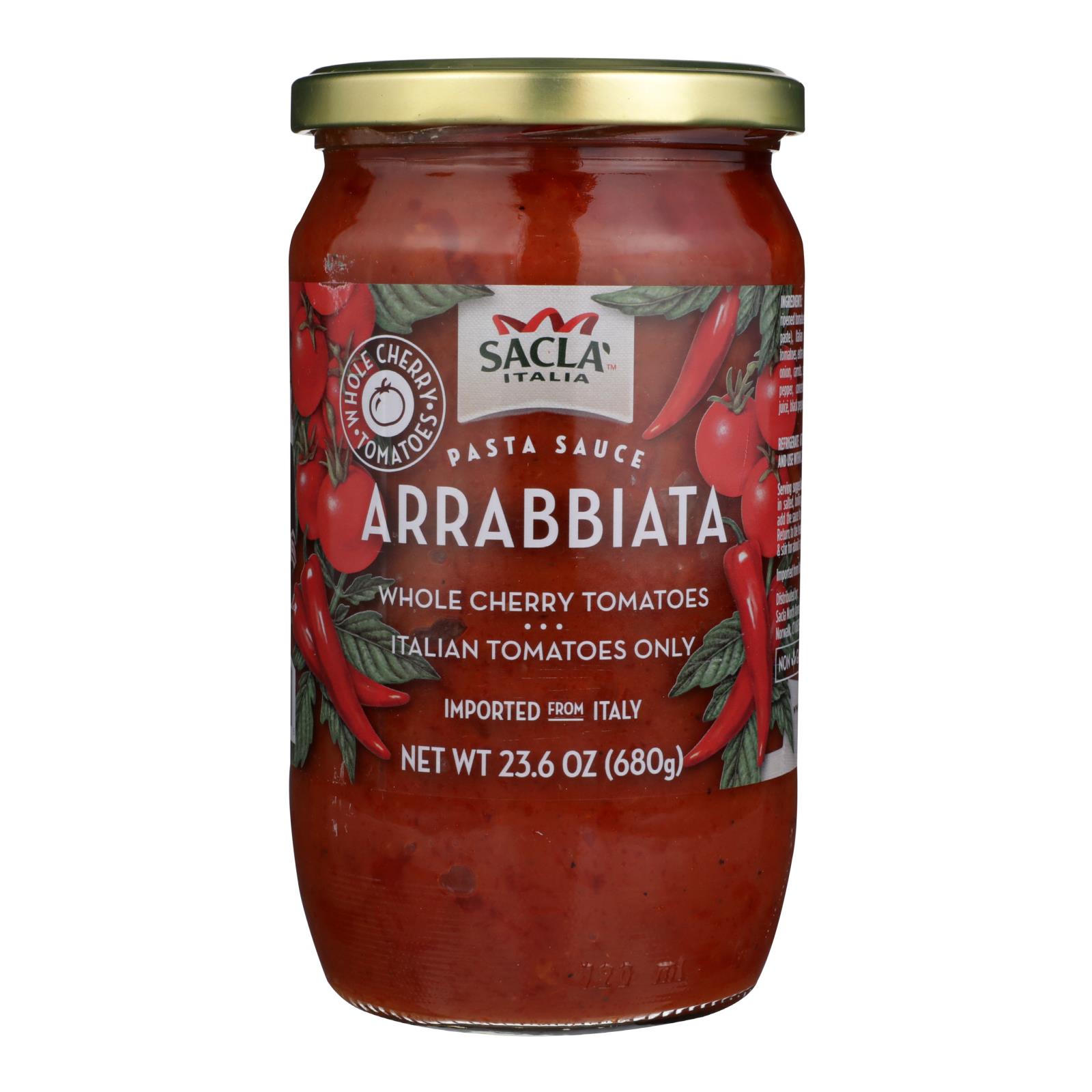 Sacla Arrabbiata Pasta Sauce is a GMO-free Italian sauce with a spicy kick, packed in a convenient case of six 24 oz jars