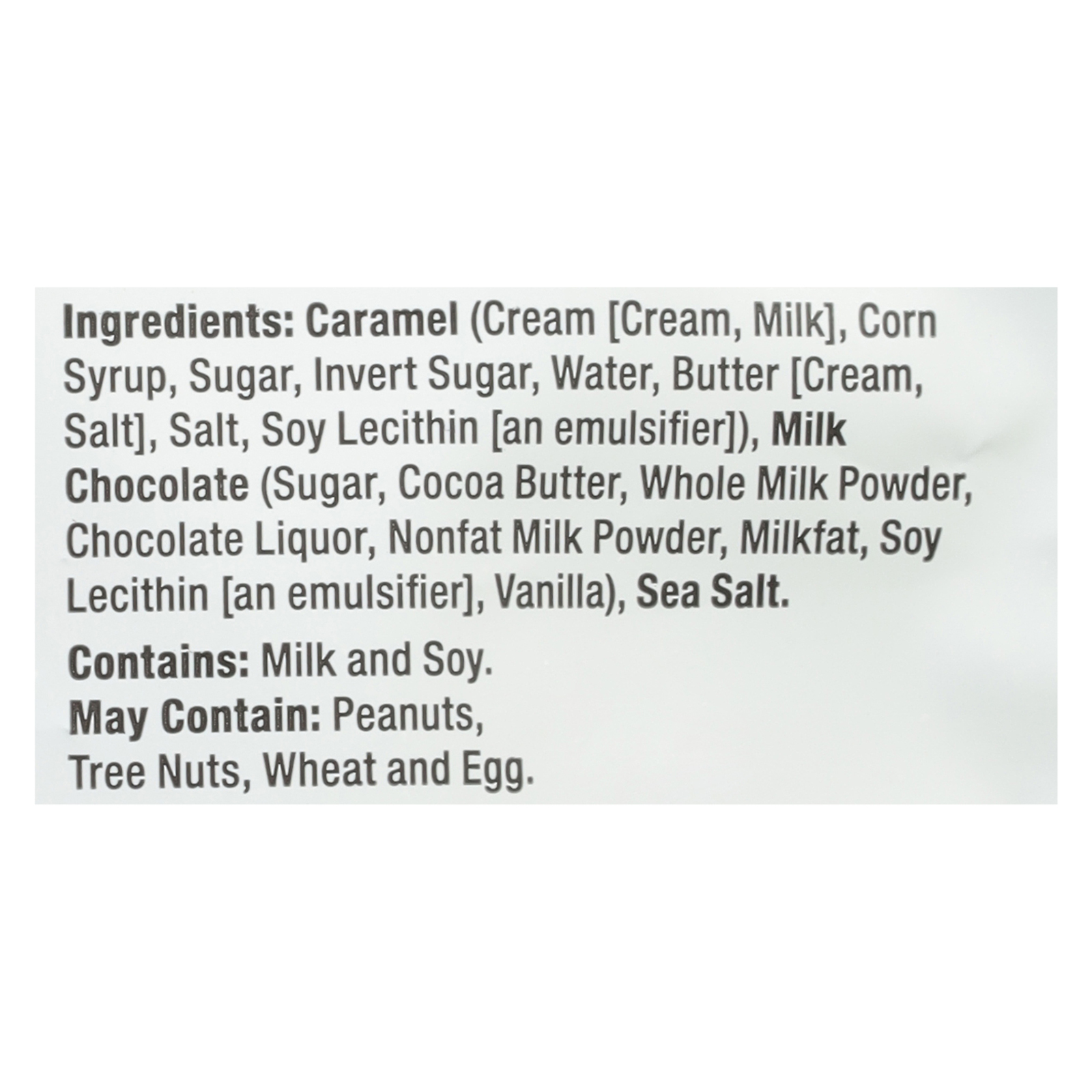 Milk chocolate, caramel, sea salt. No artificial colors or preservatives.