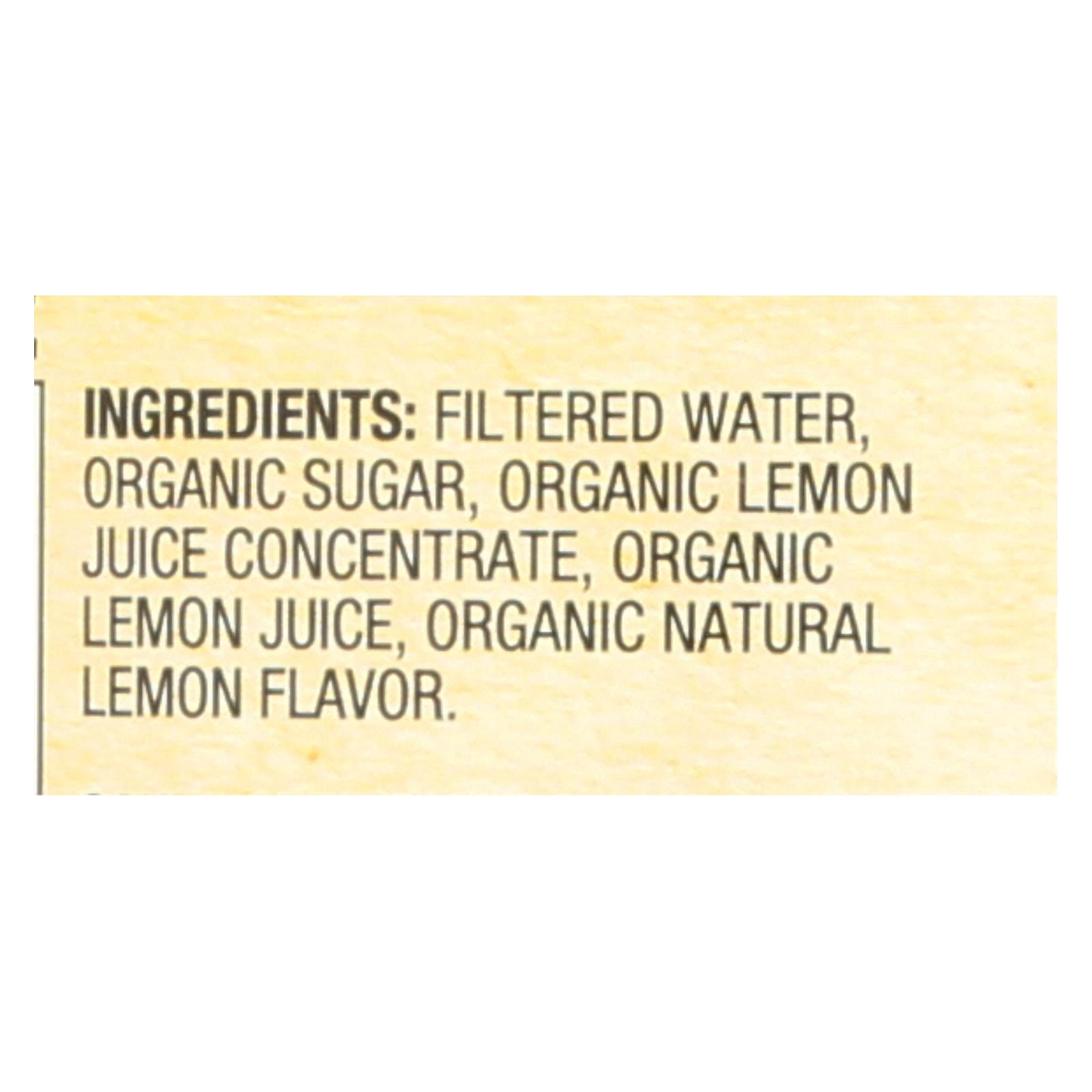 Filtered water, organic sugar, organic lemon juice concentrate, organic lemon juice, organic natural lemon flavor.
