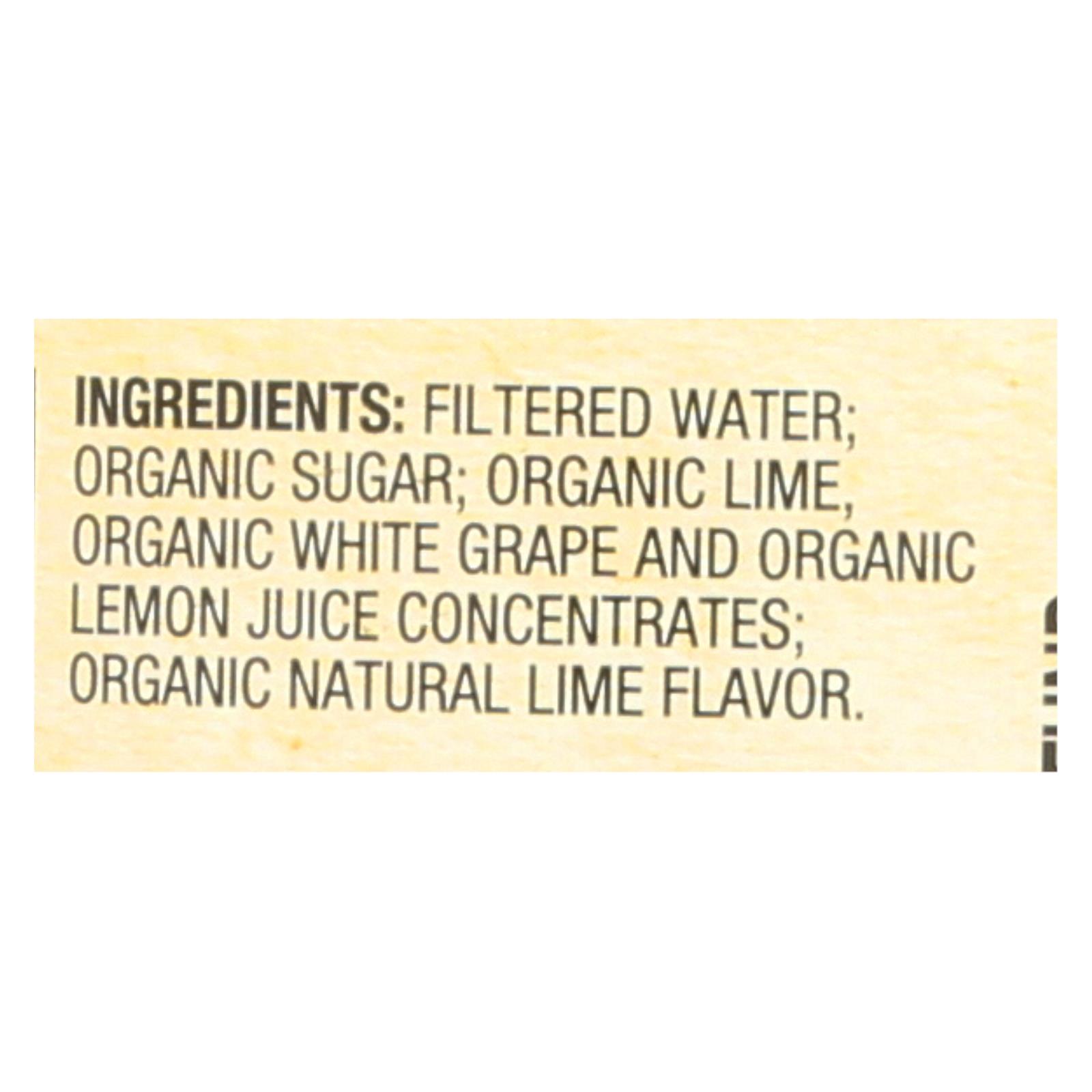 Filtered water, organic sugar, organic lime, organic white grape and organic lemon juice concentrates, organic natural lime flavor.