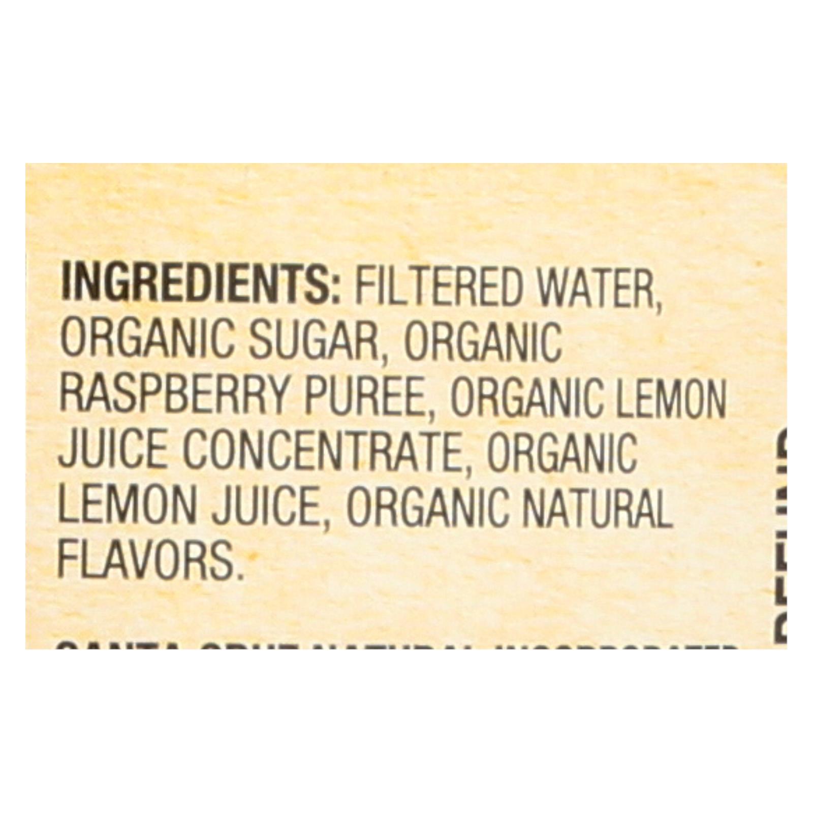 Smuckers natural foods santa cruz organic raspberry lemonade is a usda-certified organic raspberry and lemon flavored beverage made from concentrate that has been pasteurized for your safety. This 32 fl. Oz. Glass bottle of organic raspberry lemonade is a non-gmo project verified product and is also gluten-free.