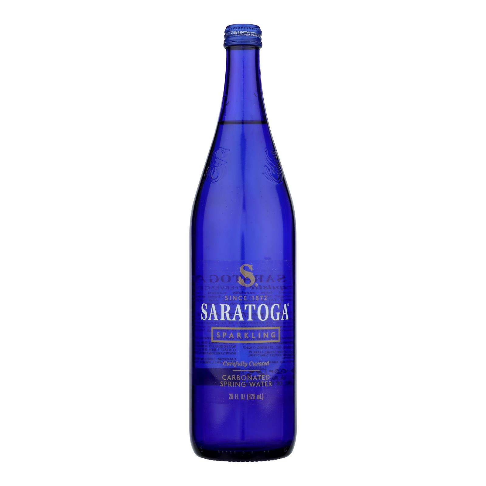 Saratoga bottled water sparkling spring water comes in a 28 fl. Oz. Bottle. Each blue bottle of sparkling water is certified kosher-parve and is not a significant source of other nutrients. Spring water is sourced from either sweet water spring, saratoga springs new york or pristine mountain springs, stockbridge, vermont and bottled in the usa.
