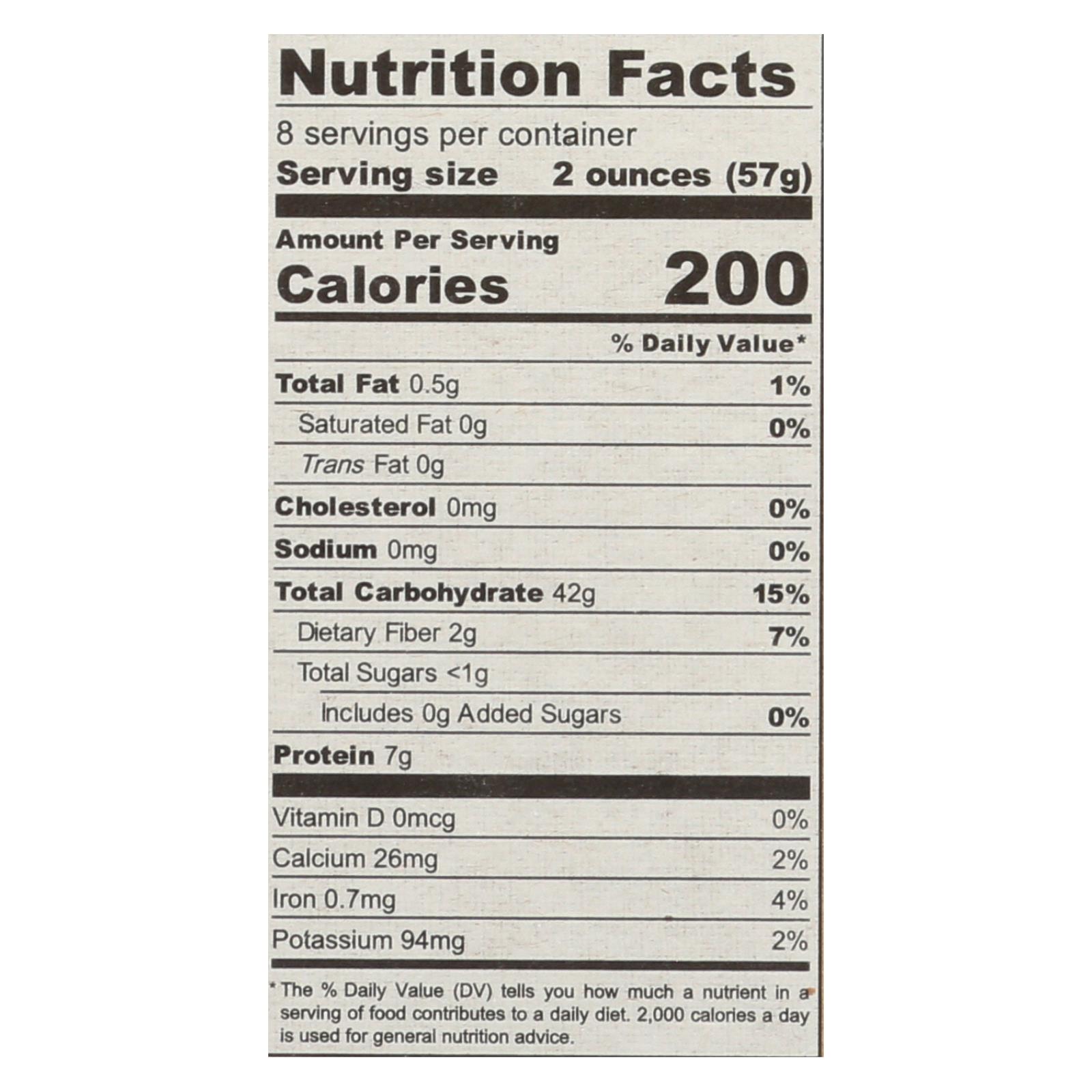 - Each 2 oz serving offers 200 calories, 2g fiber, 0g trans fat, and 0g added sugars