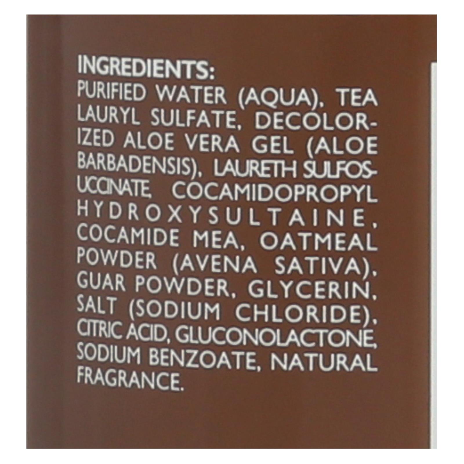 ingredients : purified water;aqua;tea lauryl sulfate;decolorized aloe vera gel;aloe barbadensis;laureth sulfosuccinate;cocamidopropyl hydroxysultaine;cocamide mea;oatmeal powder;avena sativa;guar powder;glycerin;salt;sodium chloride;citric acid;gluconolactone;sodium benzoate;natural fragrance