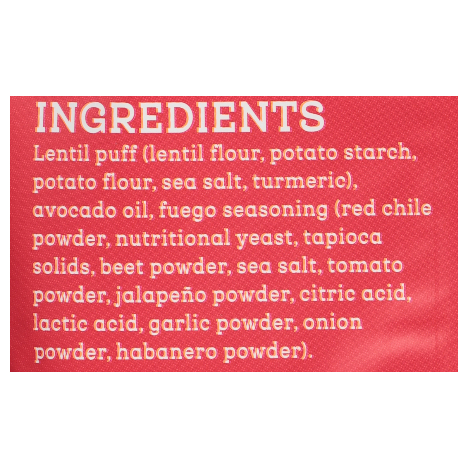 Full ingredient details are not provided by the manufacturer. However, Siete Puffs Fuego are confirmed to be non-GMO and made in the USA.