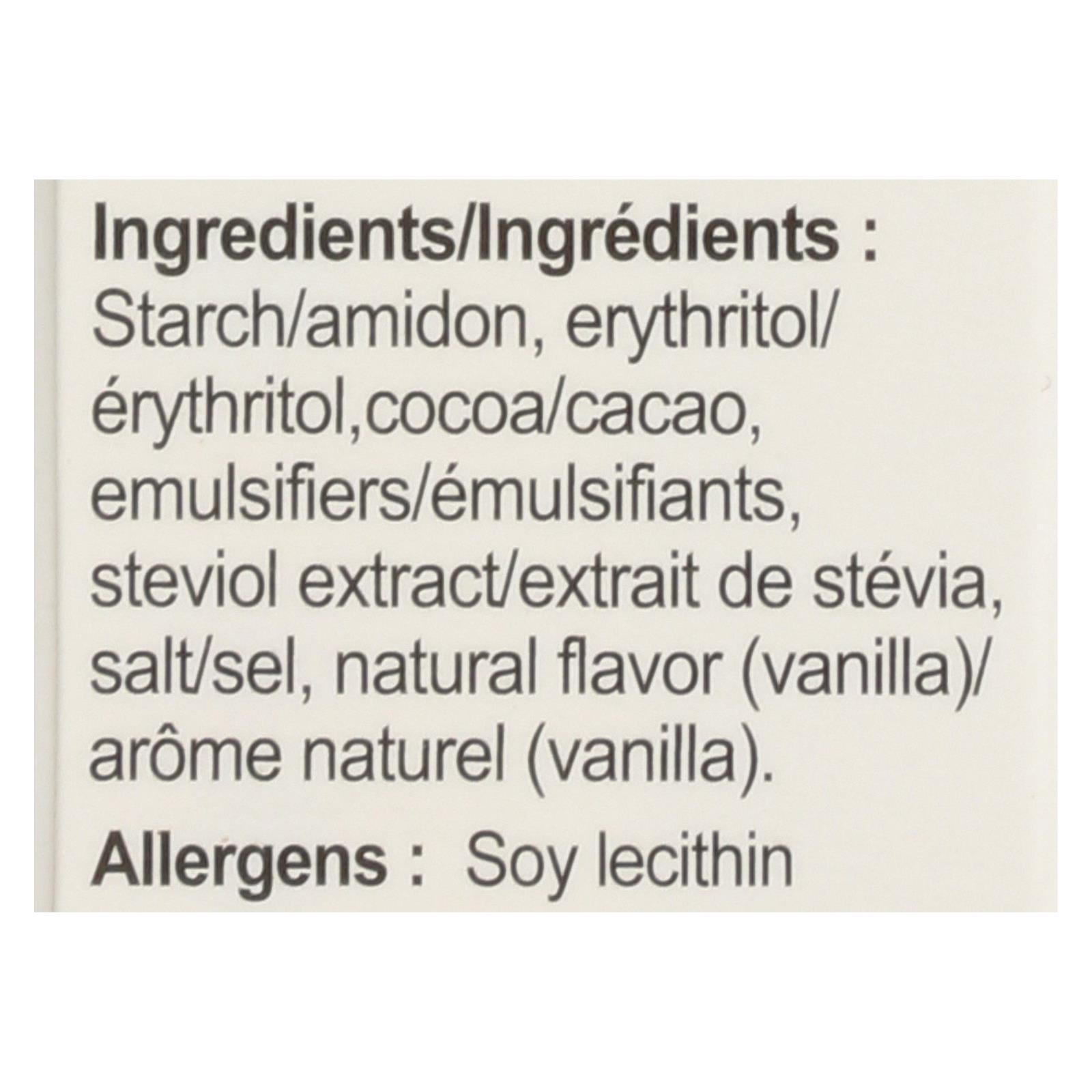 ingredients : starch;potato;erythritol;cocoa;emulsifiers;stevia extract;salt;natural flavor;vanilla