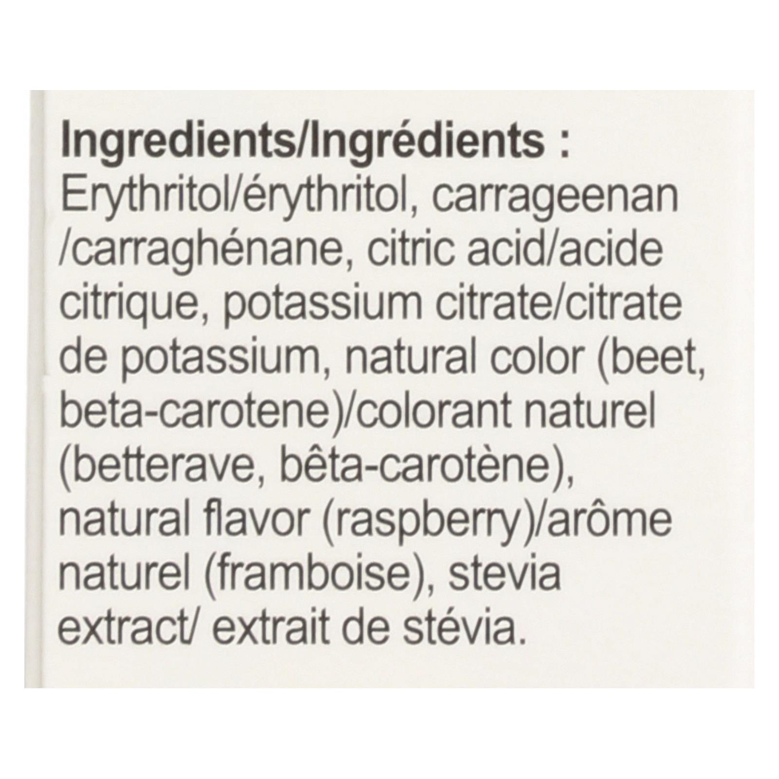 ingredients : erythritol;carrageenan;citric acid;potassium citrate;natural color;beet;beta carotene;natural flavor;raspberry;stevia extract