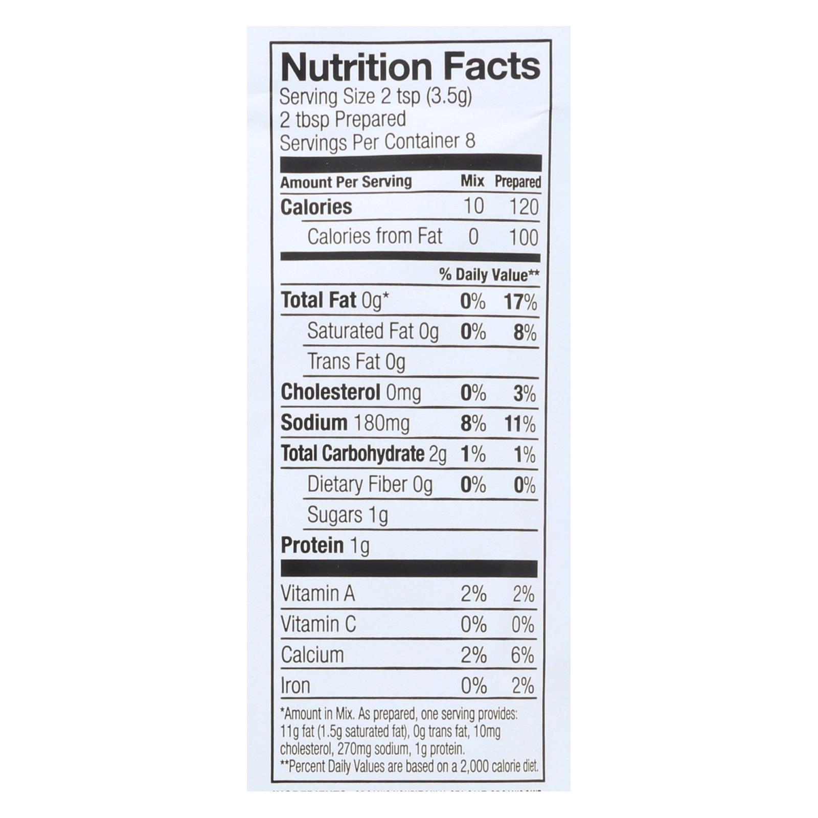 - Recommended for use as a salad dressing or dip mix-see packet for preparation instructions