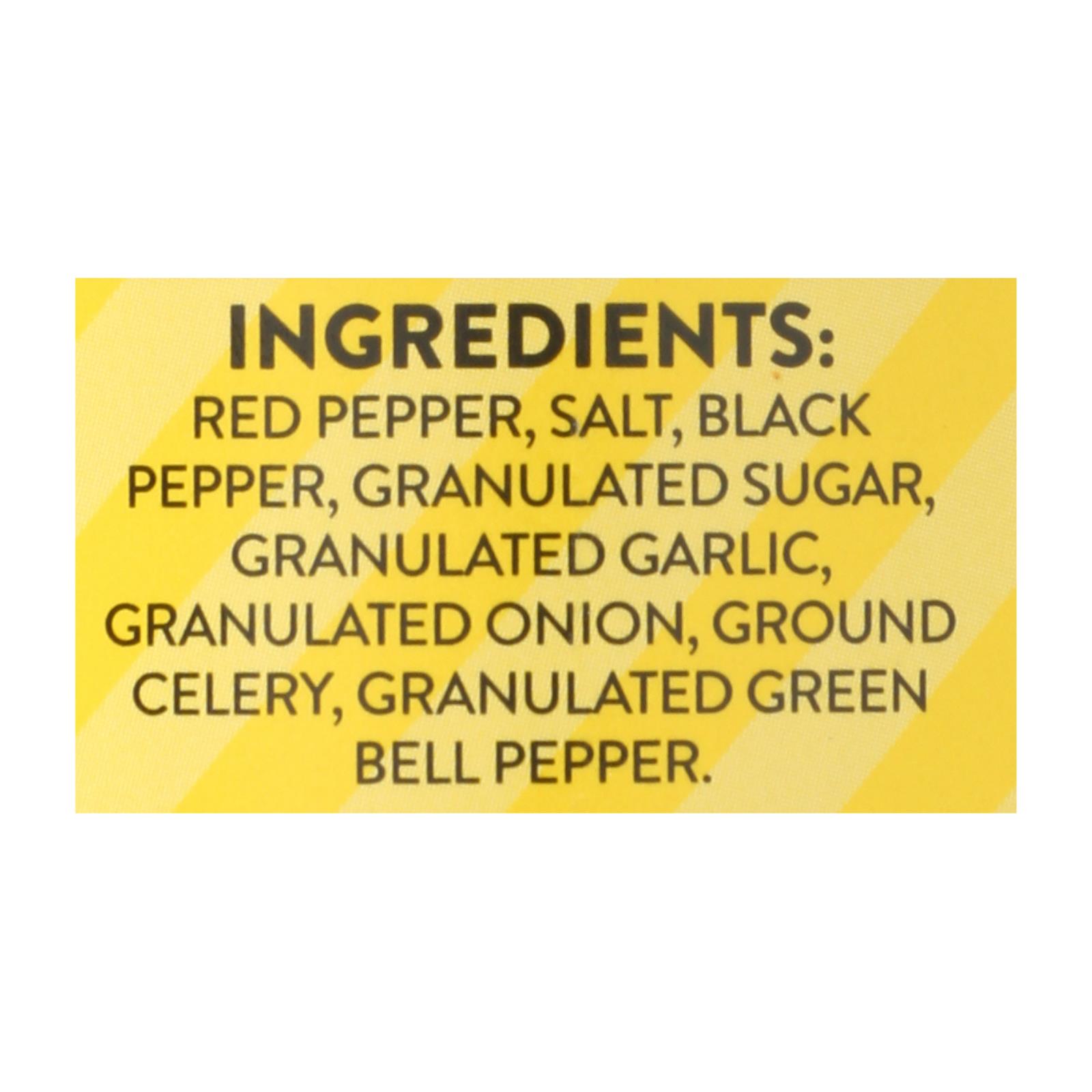 This seasoning features a lively mix of red pepper and black pepper, traditionally used to add warmth and zest to meals. Granulated garlic and onion are commonly used in herbal wellness for their aromatic qualities, while ground celery and green bell pepper bring a fresh, savory depth. All ingredients are thoughtfully blended for a classic Cajun flavor experience.