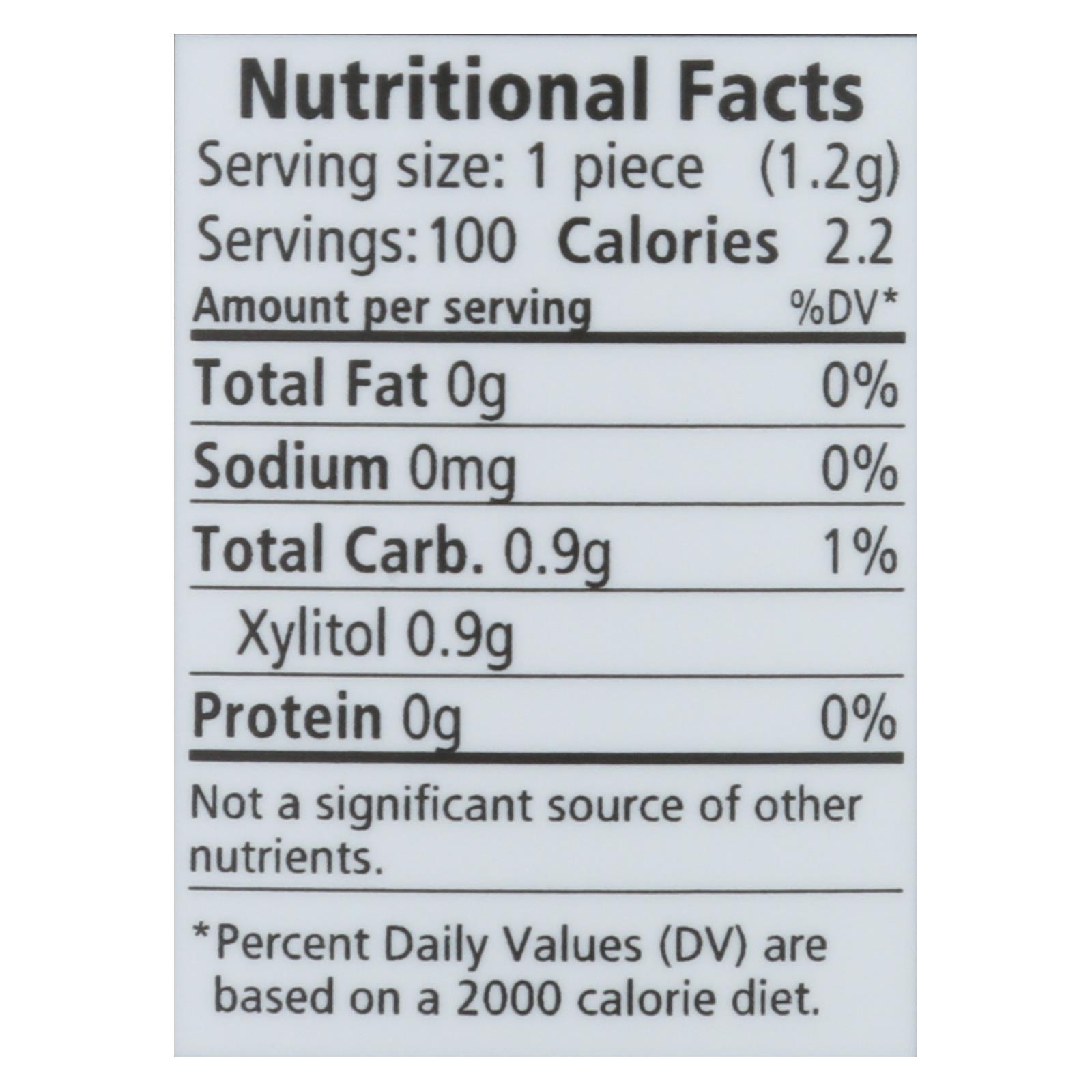 Xylitol, gum base, natural flavors, calcium carbonate, gum arabic, vegetable glycerin, sunflower lecithin, carnauba wax, stevia.
