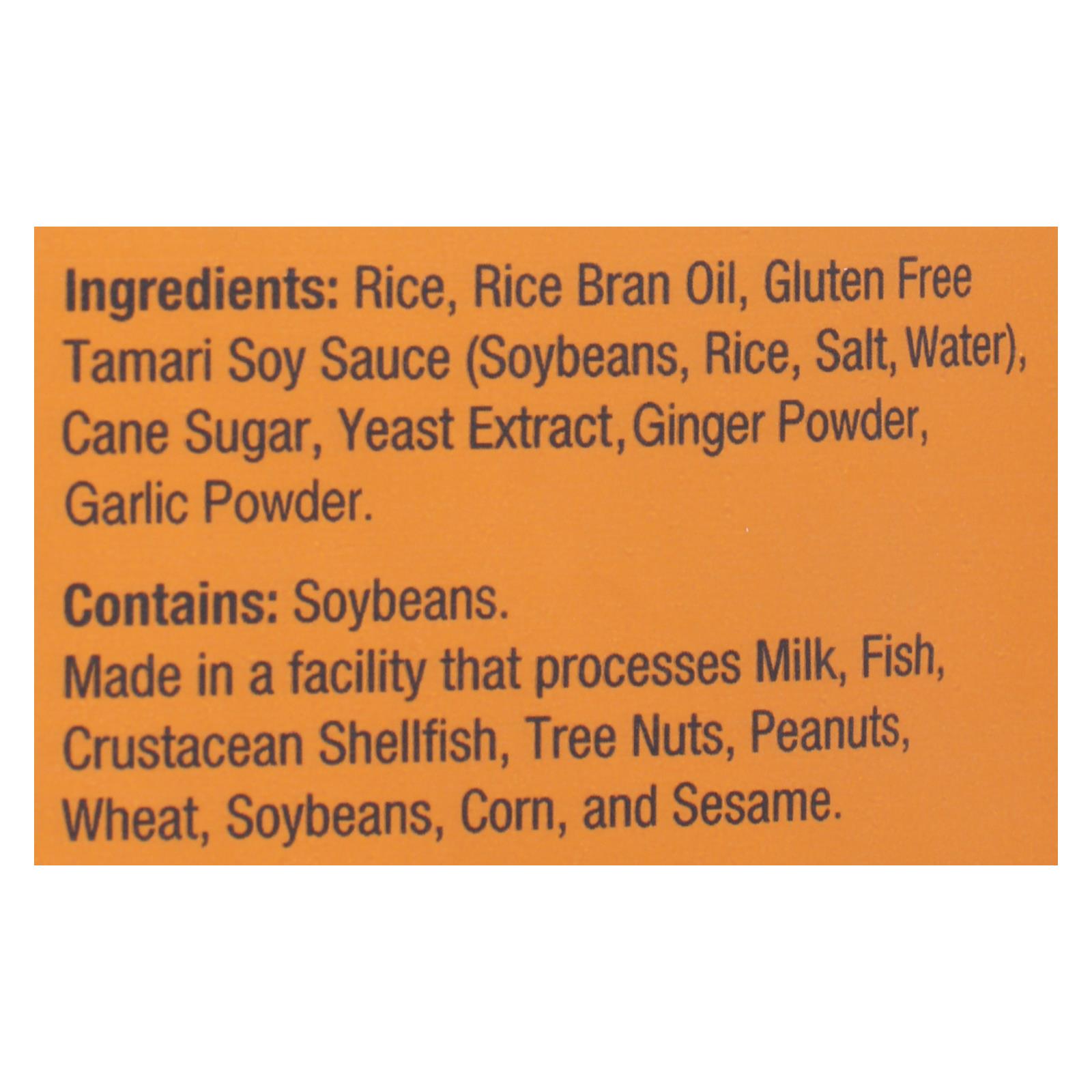 Rice, rice bran oil, gluten free tamari soy sauce (soybeans, rice, salt, water), cane sugar, yeast extract, ginger powder, garlic powder.