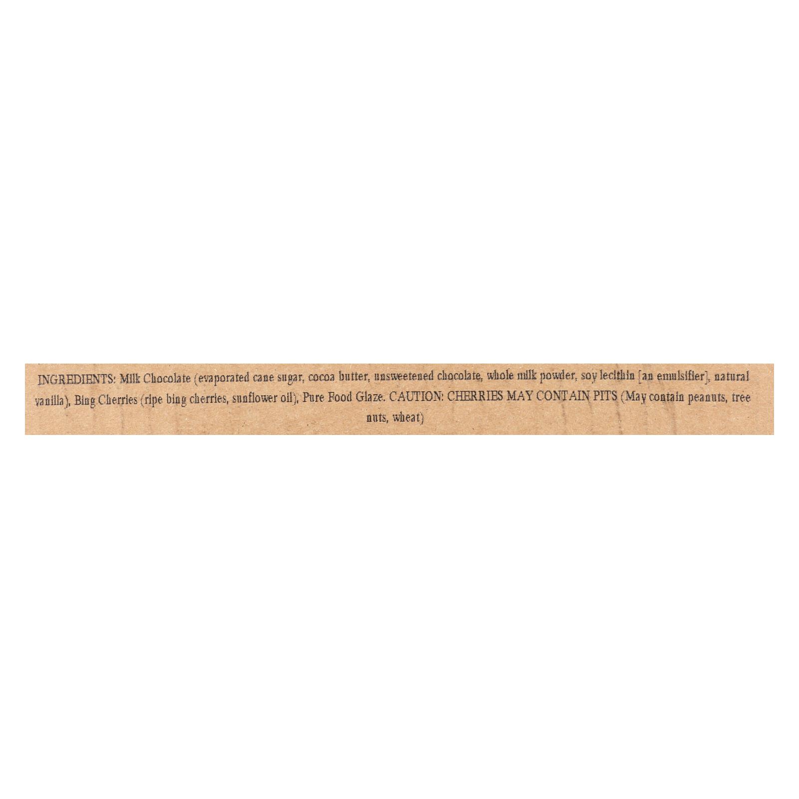At the heart of this treat are juicy bing cherries, known for their naturally sweet flavor, paired with smooth milk chocolate and a hint of natural vanilla. These ingredients come together to create a deliciously satisfying snack, ideal for sharing or savoring solo.