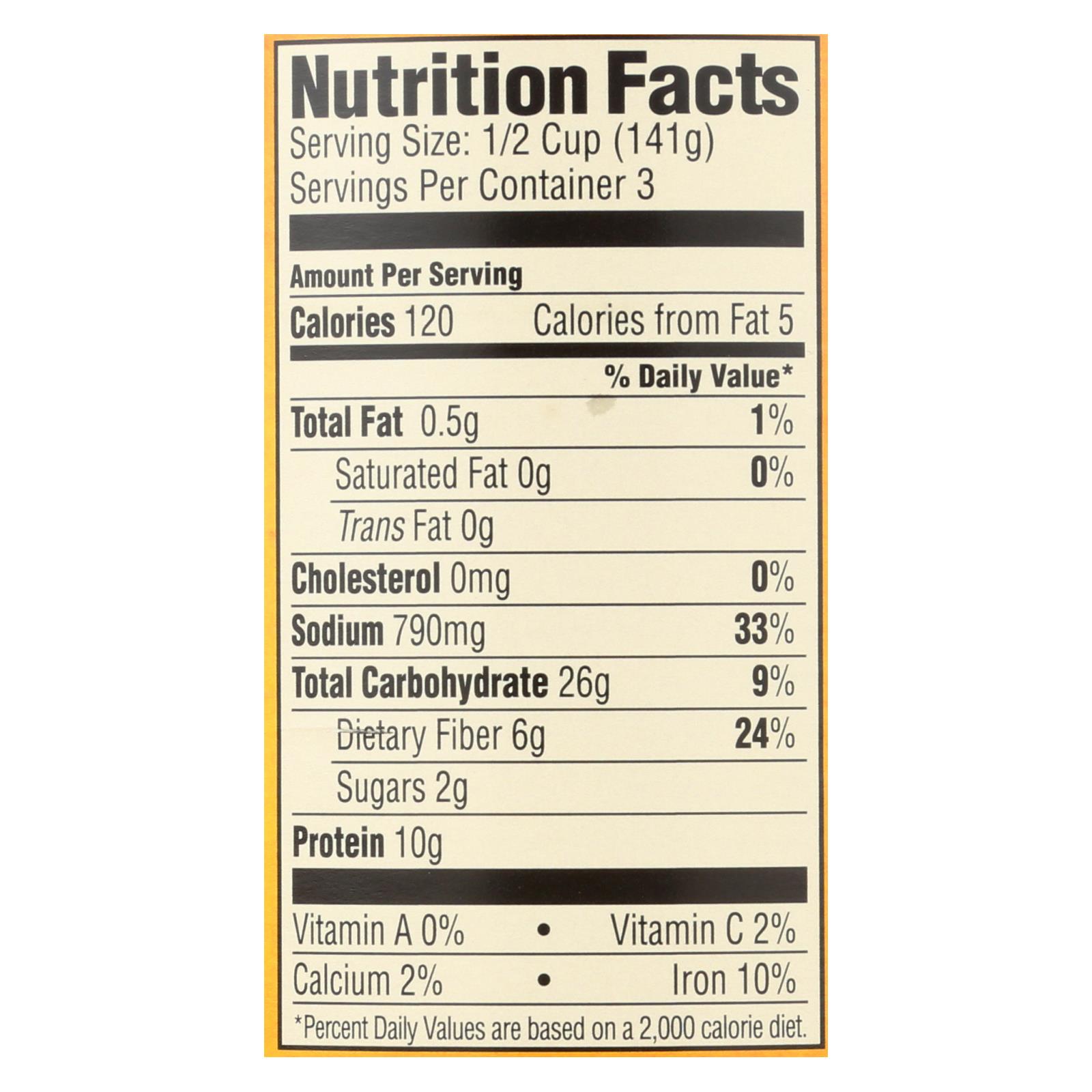 - Serving size: 1/3 can (approximately 5 oz); 3 servings per 15 oz can