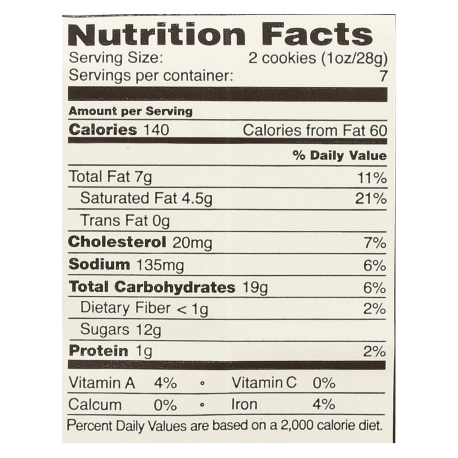 - Serving size: 2 cookies (140 calories per serving)