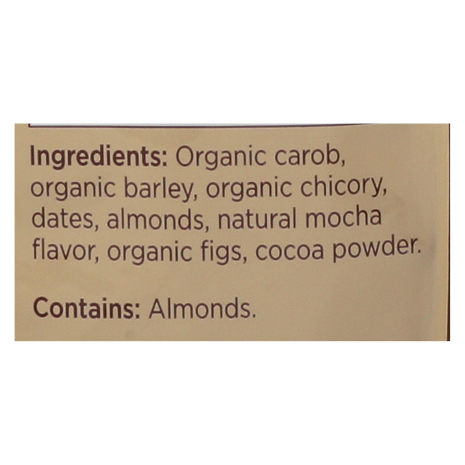 Organic carob, organic barley, organic chicory, dates, almonds, natural mocha flavor, organic figs, cocoa powder.