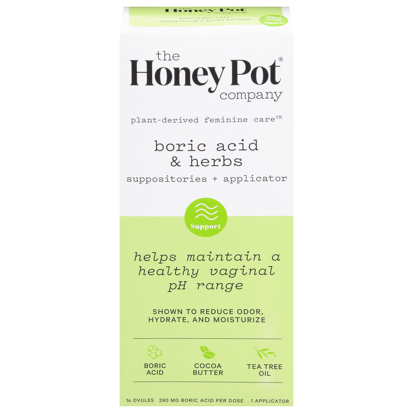 This unique formula features boric acid, commonly used in wellness traditions for its antifungal properties, cocoa butter for natural moisturizing, and tea tree oil, traditionally valued for its antibacterial qualities. Each ingredient is carefully selected to help you feel balanced and cared for, the natural way.