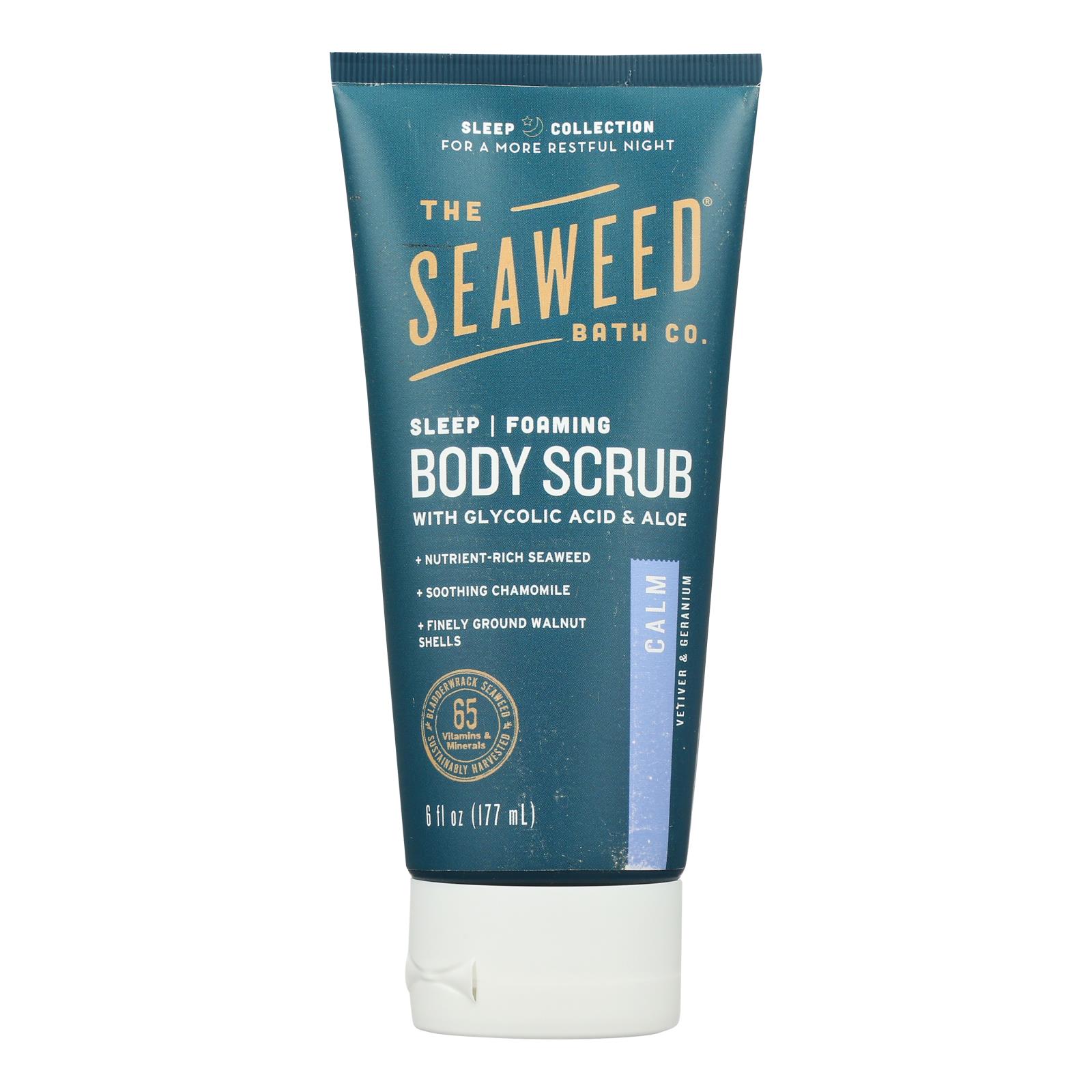 This scrub features bladderwrack seaweed and chlorella, both traditionally used for their mineral content and skin-nourishing properties. Chamomile flower extract is commonly used in herbal wellness for its calming qualities, while aloe vera and meadowsweet help leave skin feeling refreshed and hydrated. Walnut shell gently exfoliates, revealing smoother, softer skin.