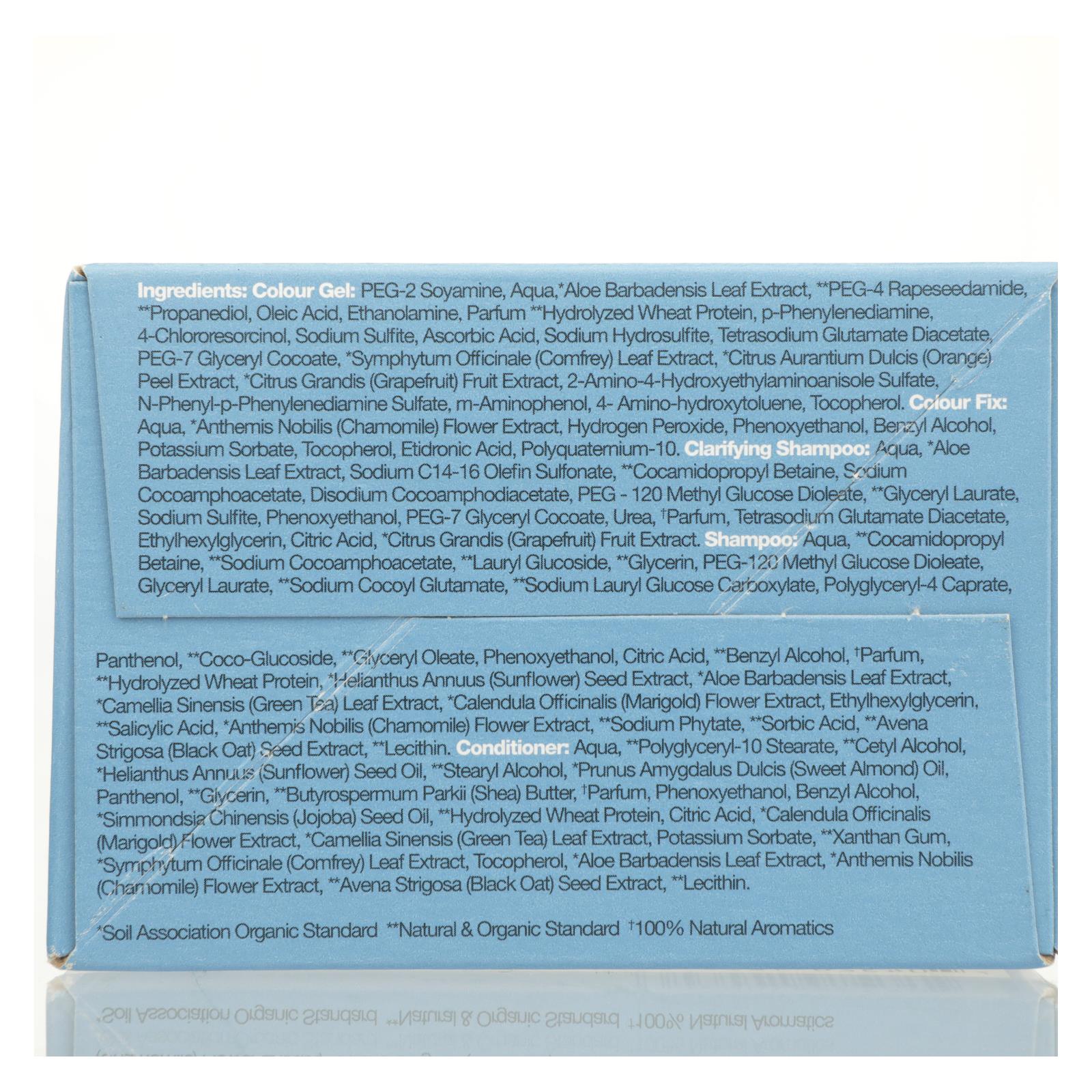 ingredients : colour gel: peg-2 soyamine;aqua;aloe barbadensis leaf extract;peg-4 rapeseedamide;propanediol;oleic acid;ethanolamine;parfum **hydrolyzed wheat protein;p-phenylenediamine;4-chlororesorcinol;sodium sulfite;ascorbic acid;sodium hydrosulfite;tetrasodium glutamate diacetate;peg-7 glyceryl cocoate;symphytum officinale;comfrey;leaf extract;citrus aurantium dulcis;orange;peel extract;citrus grandis;grapefruit;fruit extract;2-amino-4-hydroxyethylaminoanisole sulfate;n-phenyl-p-phenylenediamine sulfate;m