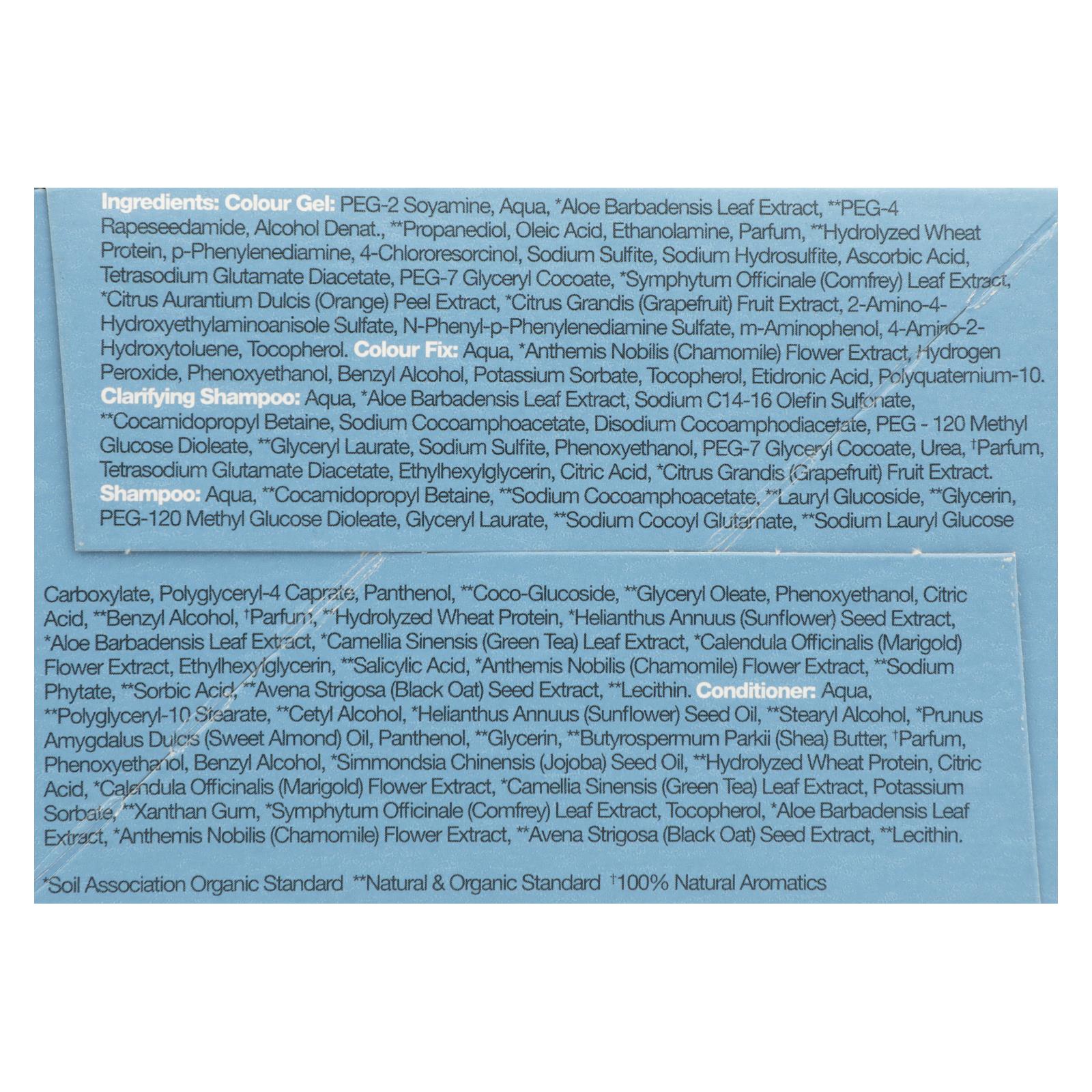 ingredients : colour gel: peg-2 soyamine;aqua;aloe barbadensis leaf extract;peg-4 rapeseedamide;alcohol denat;propanediol;oleic acid;ethanolamine;parfum;hydrolyzed wheat protein;p-phenylenediamine;4-chlororesorcinol;sodium sulfite;sodium hydrosulfite;ascorbic acid;tetrasodium glutamate diacetate;peg-7 glyceryl cocoate;symphytum officinale;comfrey;leaf extract;citrus aurantium dulcis;orange;peel extract;citrus grandis;grapefruit;fruit extract;2-amino-4-hydroxyethylaminoanisole sulfate;n-phenyl-p-phenylenediami