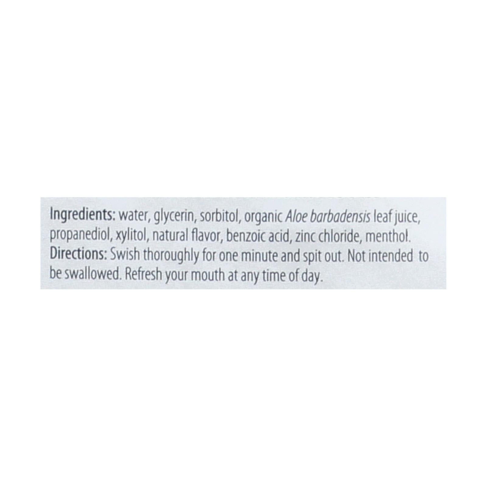 Water, glycerin, sorbitol, organic aloe barbadensis leaf juice, propanediol, xylitol, natural flavor, benzoic acid, zinc chloride, menthol.