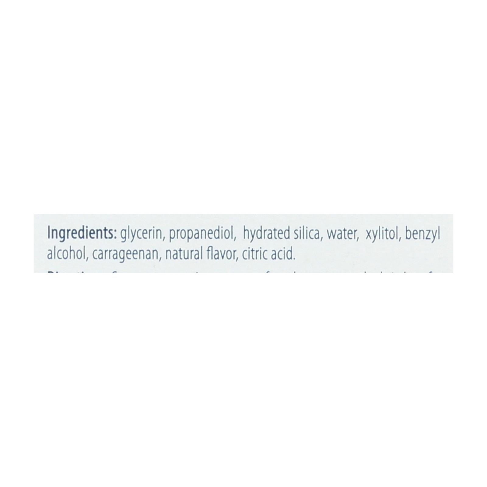Glycerin, Propanediol, Hydrated Silica, Water, Xylitol, Benzyl Alcohol, Carrageenan, Natural Flavor, Citric Acid