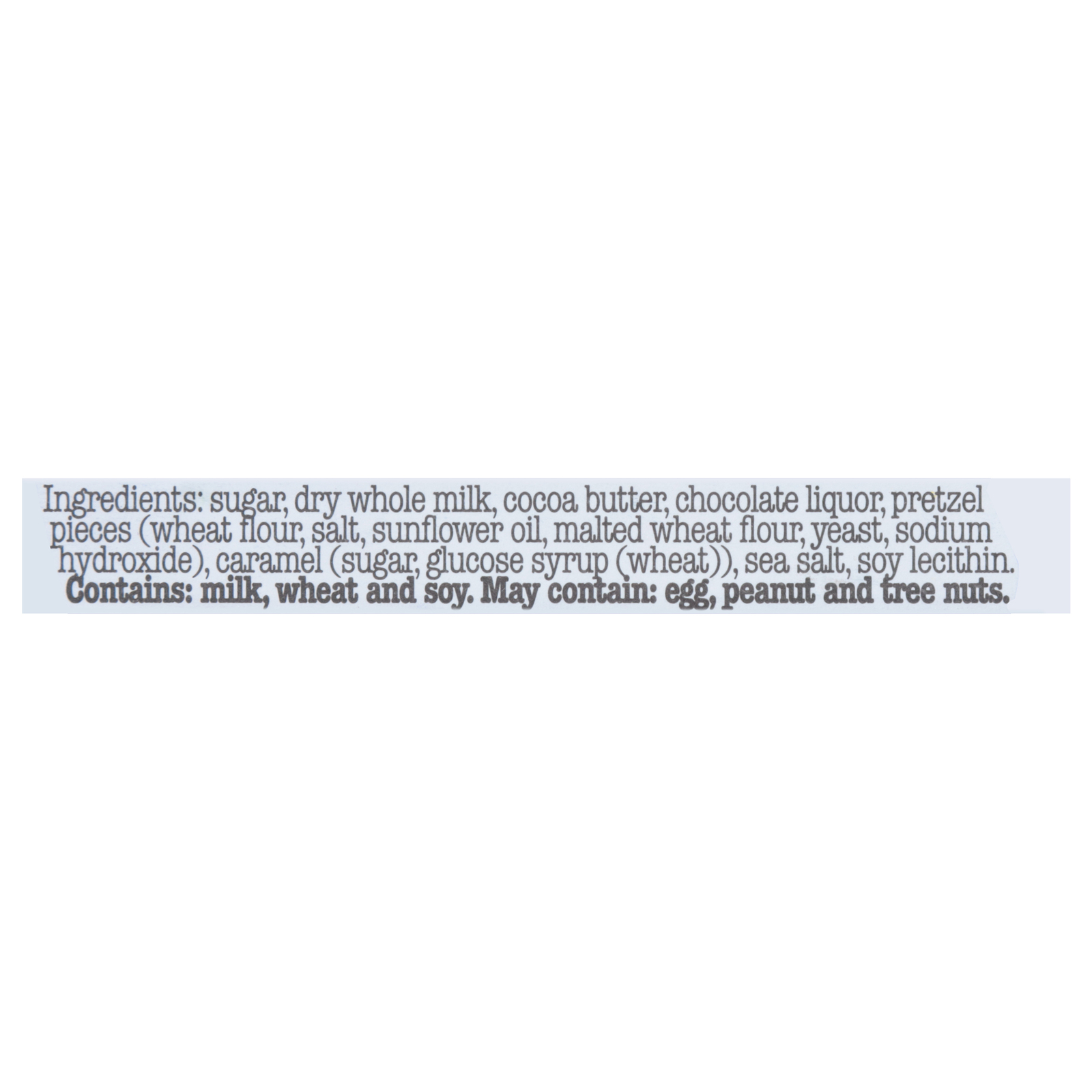 Dark milk chocolate, pretzel pieces, toffee.