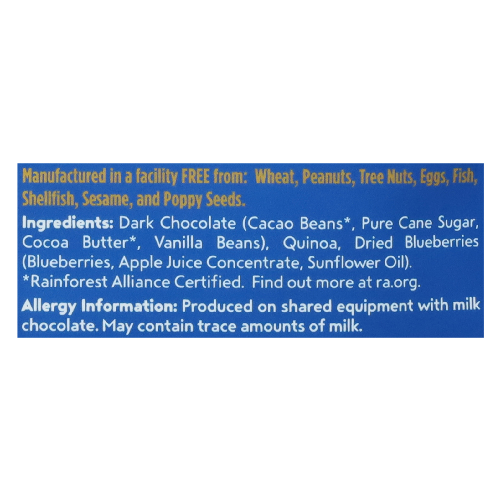 Undercover Chocolate Mini Crisps in Dark Chocolate Blueberry are dairy-free, gluten-free, and GMO-free, sold in a case of twelve 3 oz packs