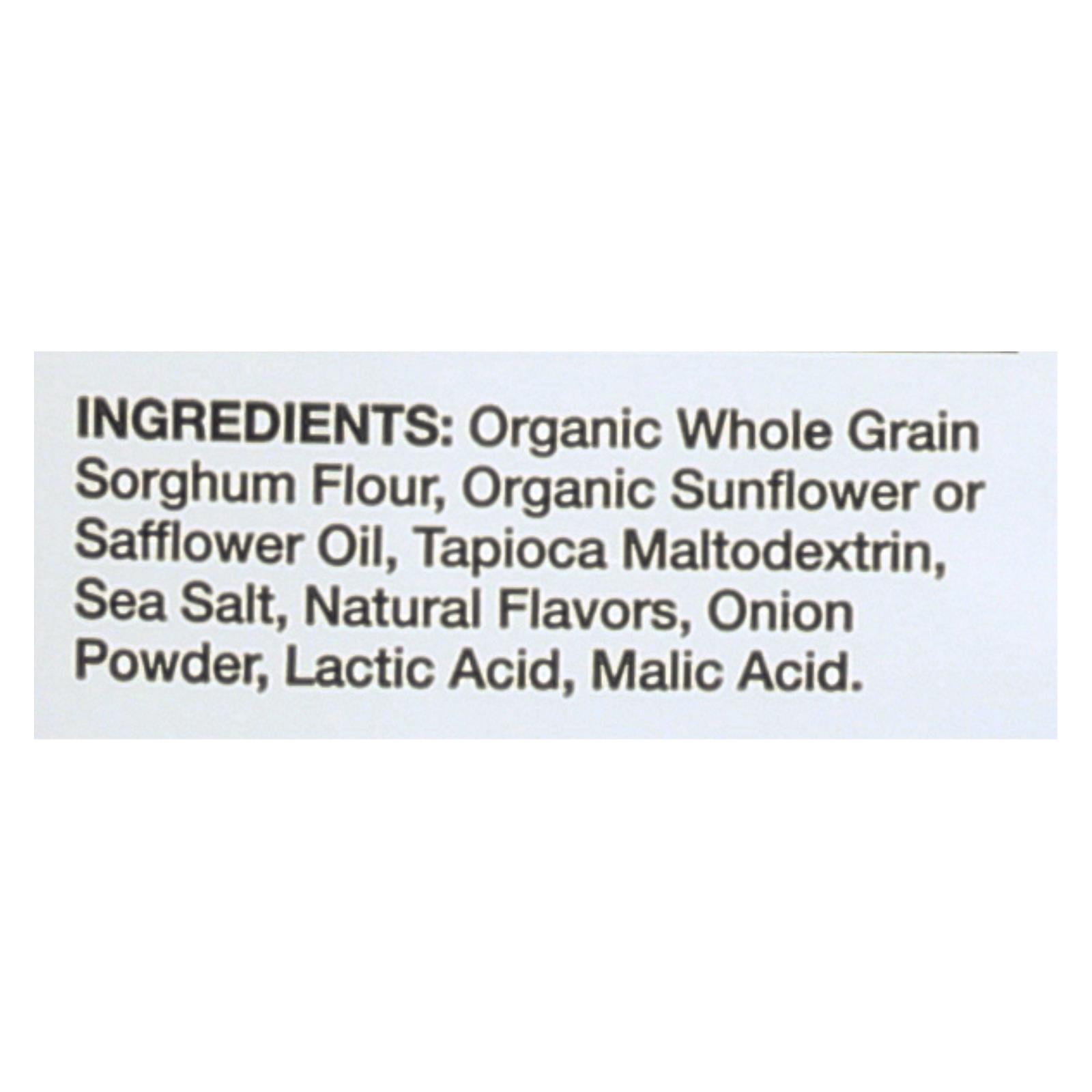 Organic whole grain sorghum flour, organic sunflower or safflower oil, tapioca maltodextrin, sea salt, natural flavors, onion powder, lactic acid, malic acid.