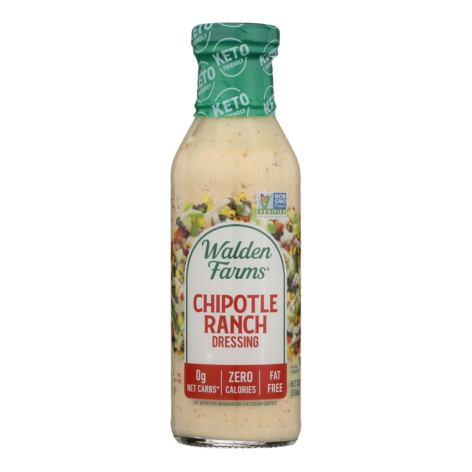 Walden farms chipotle ranch dressing is a calorie-free alternative to traditional recipe ranch dressings. For use as a salad topping, sandwich spread, vegetable or snack dip, every 12 fl. Oz. Bottle of walden farms chipotle ranch also provides a dressing option that’s completely free of fat, cholesterol, carbohydrates and sugars. See nutrition facts panel for allergens.