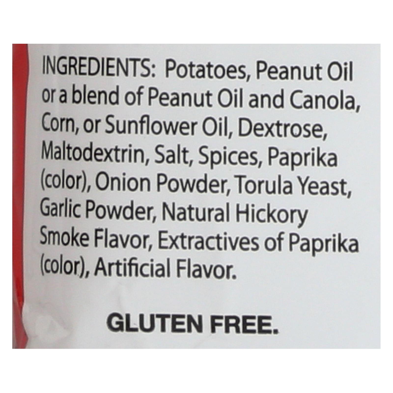 ingredients : potatoes;peanut oil or a blend of peanut oil and canola;corn;or sunflower oil;dextrose;maltodextrin;salt;spices;paprika;color;onion powder;torula yeast;garlic powder;natural hickory smoke flavor;extractives of paprika;artificial flavor