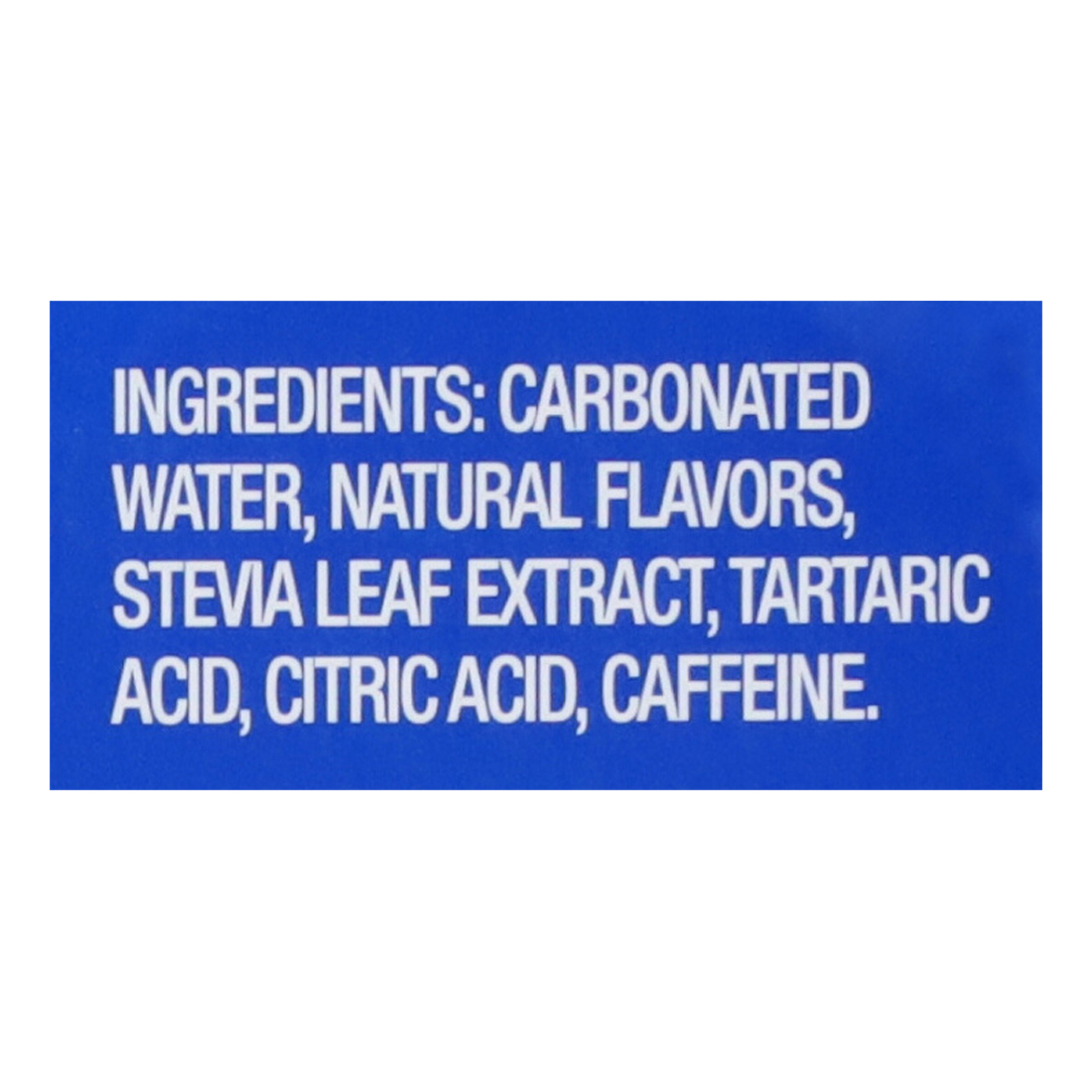 Carbonated water, stevia leaf extract, tartaric acid, natural flavors, citric acid, caffeine.