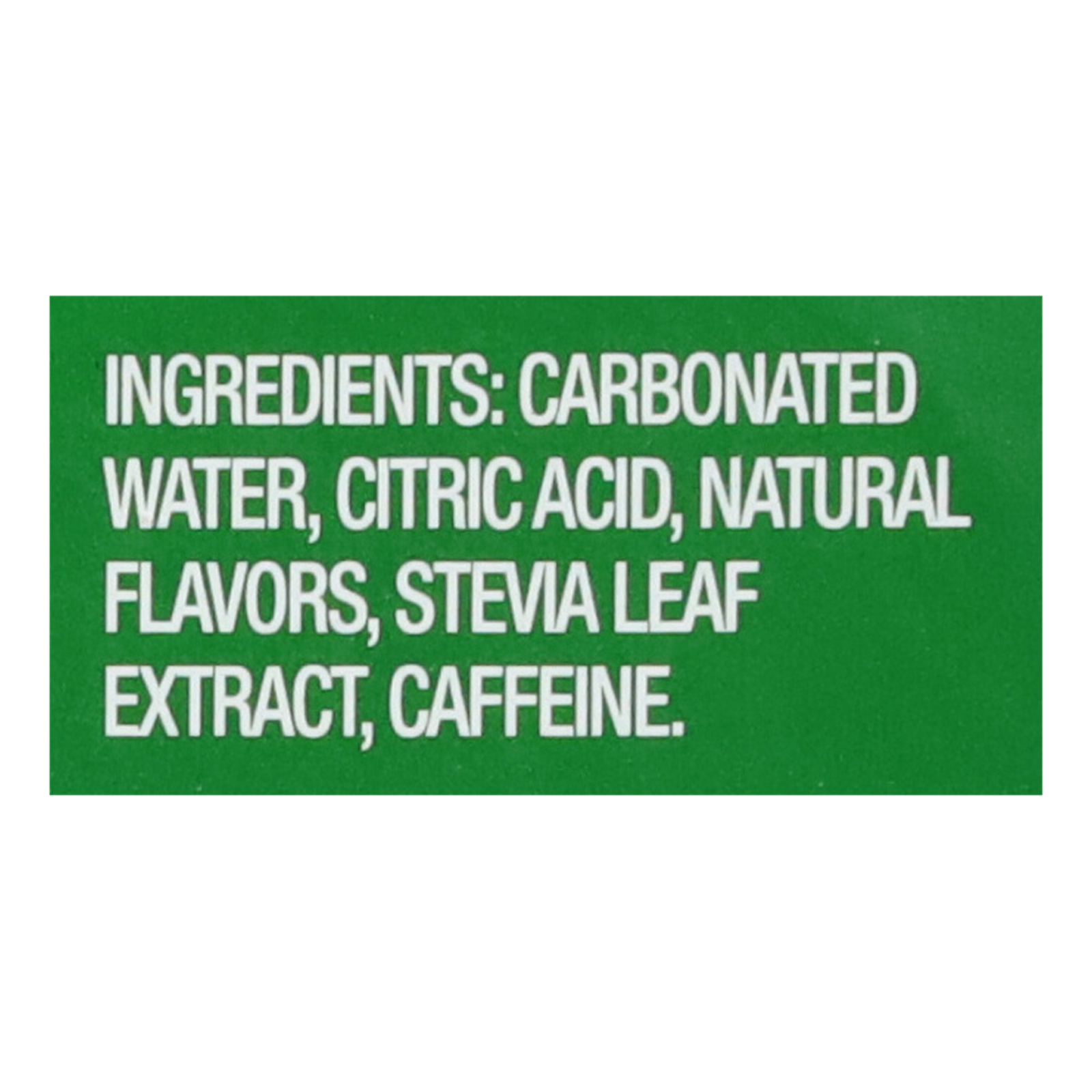 Carbonated water, natural flavors, citric acid, stevia leaf extract, caffeine.