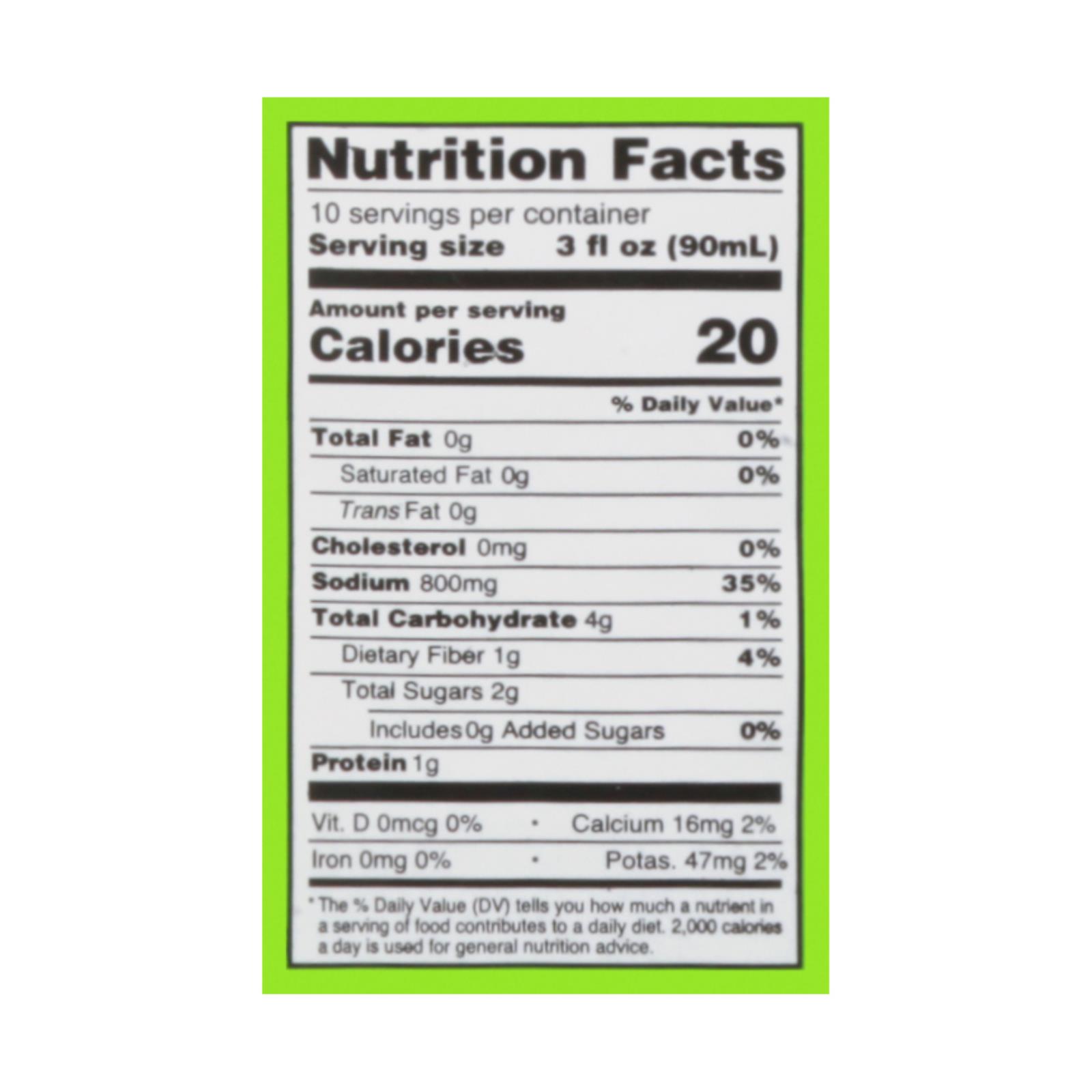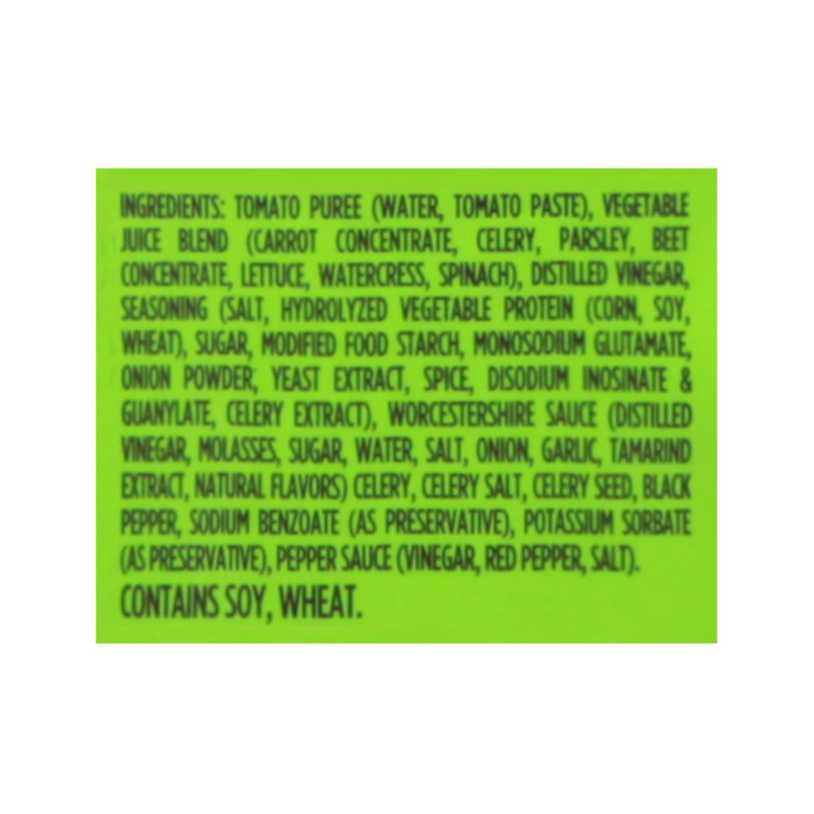 7 vegetable juice blend, complex array of seasonings. (Full ingredient list not provided by manufacturer.)